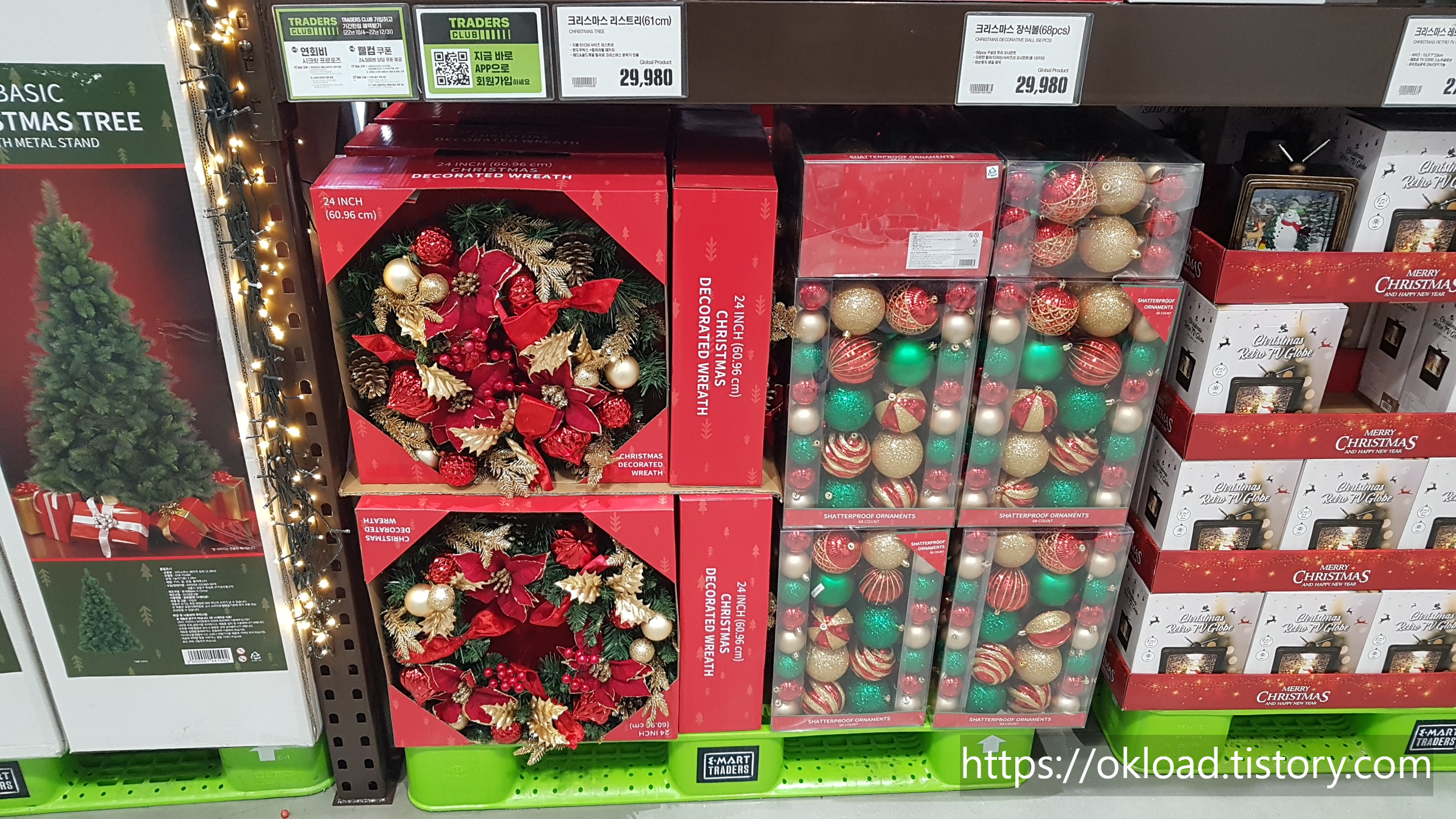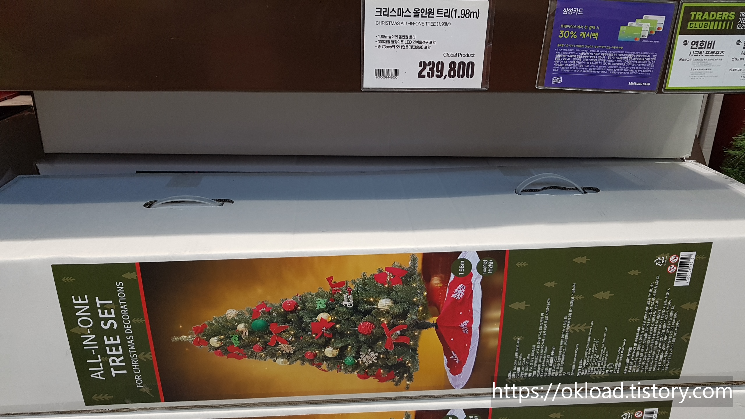 대형 크리스마스 트리가 가장 먼저 눈에 들어온다. 대형 트리의 종류는 루돌프, 편백나무 같은 하얀 나무, 그리고 일반적인 모습의 초록색 트리가 있었다. 2023년 크리스마스까지 아직 2개월 정도가 남았음에도 트레이더스는 이미 연말 크리스마스 분위기를 내고 있었다.