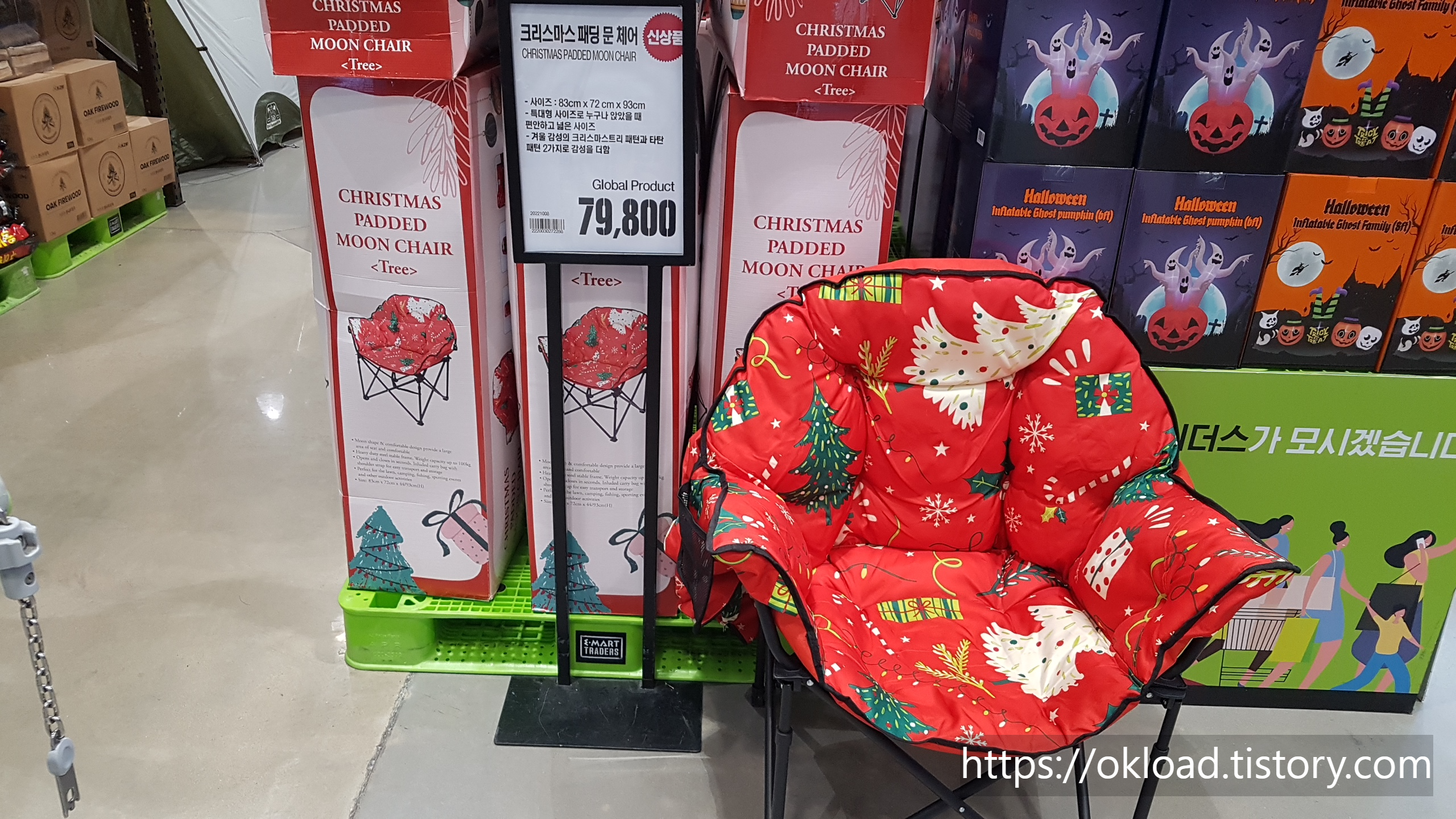 크리스마스 곰돌이 인형 3개 세트 34,980원 / 크리스마스 패딩 문 체어 79,800원.