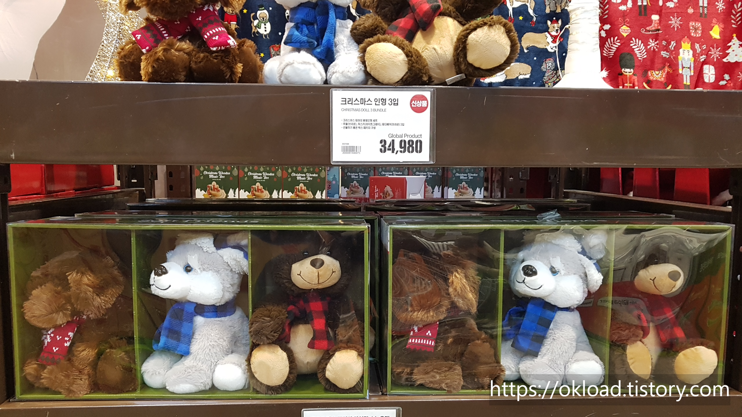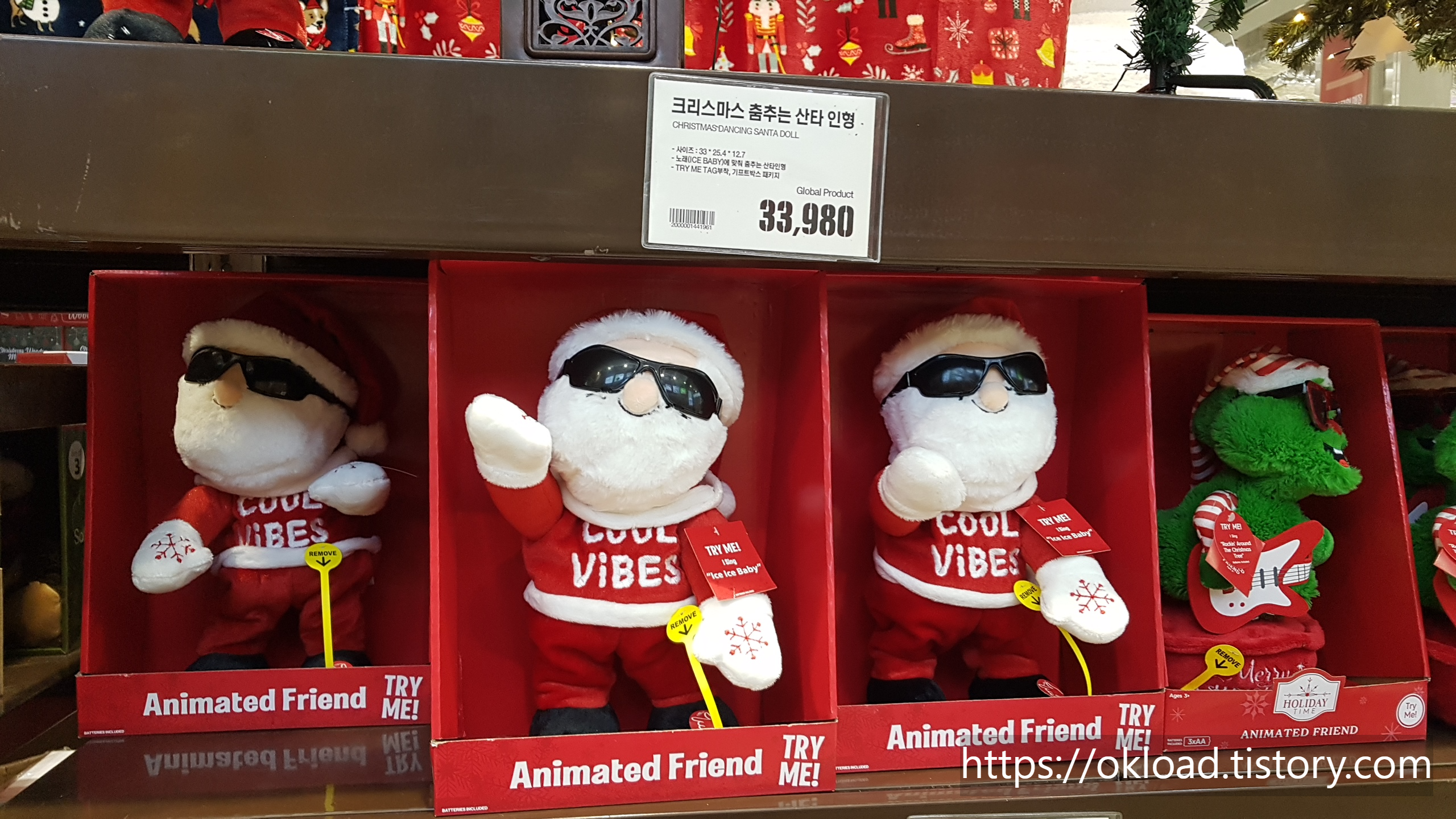 크리스마스 리스트리(61cm) 29,980원 / 크리스마스 장식볼(68p) 29,980원 / 춤추는 산타인형 33,980원.