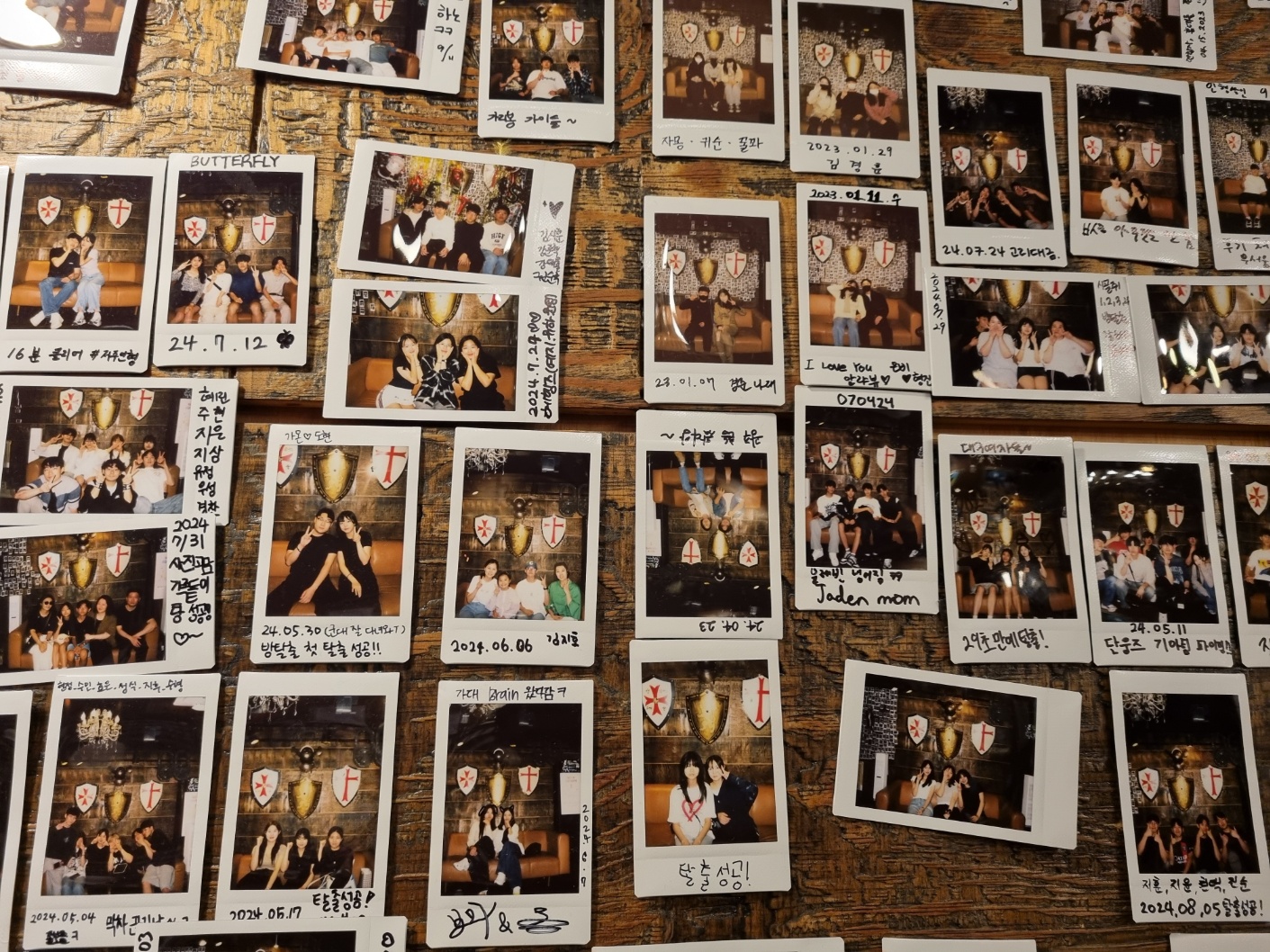 대부분 20대의 젊은이들이 연인이나 친구끼리 방문하여 기념으로 촬영한 폴라로이드 기념사진들이 벽면에 부착되어 있었다.