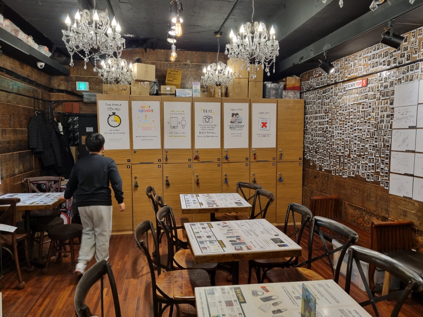 유명하고 인기 있다는 홍대방탈출카페에 도착하여 대기석에 앉아서 기다리는 동안 주변을 둘러보았다.