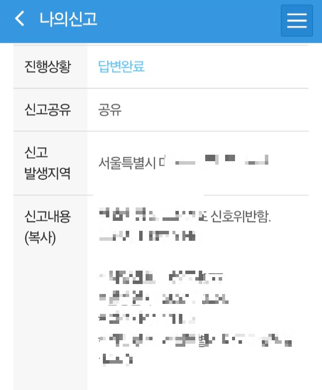 블랙박스신고 답변완료 확인