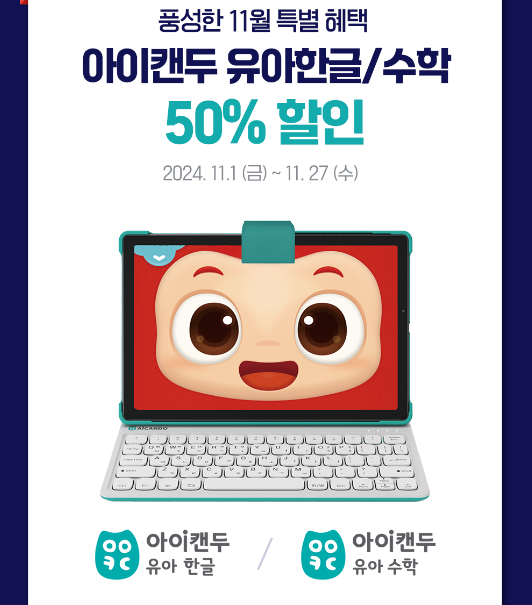 11월에만 또 진행되는 특별한 빨간펜 이벤트 행사는 '아이캔두 유아한글 유아 수학' 50% 할인 프로모션입니다.