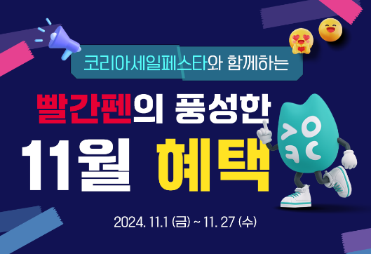 오늘은 국민 학습지라 해도 과언이 아닌, 빨간펜 코리아세일페스타 11월 혜택 이벤트 정보를 알려드리고자 합니다.