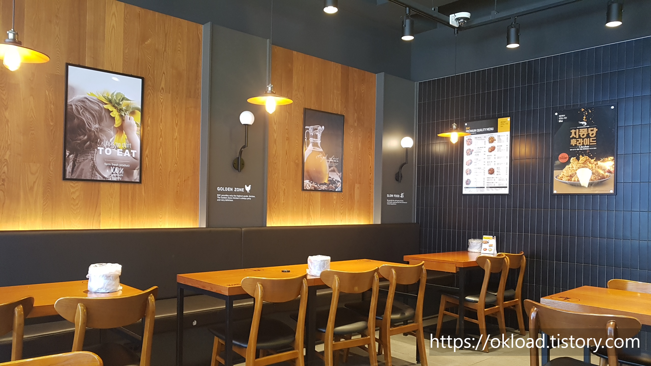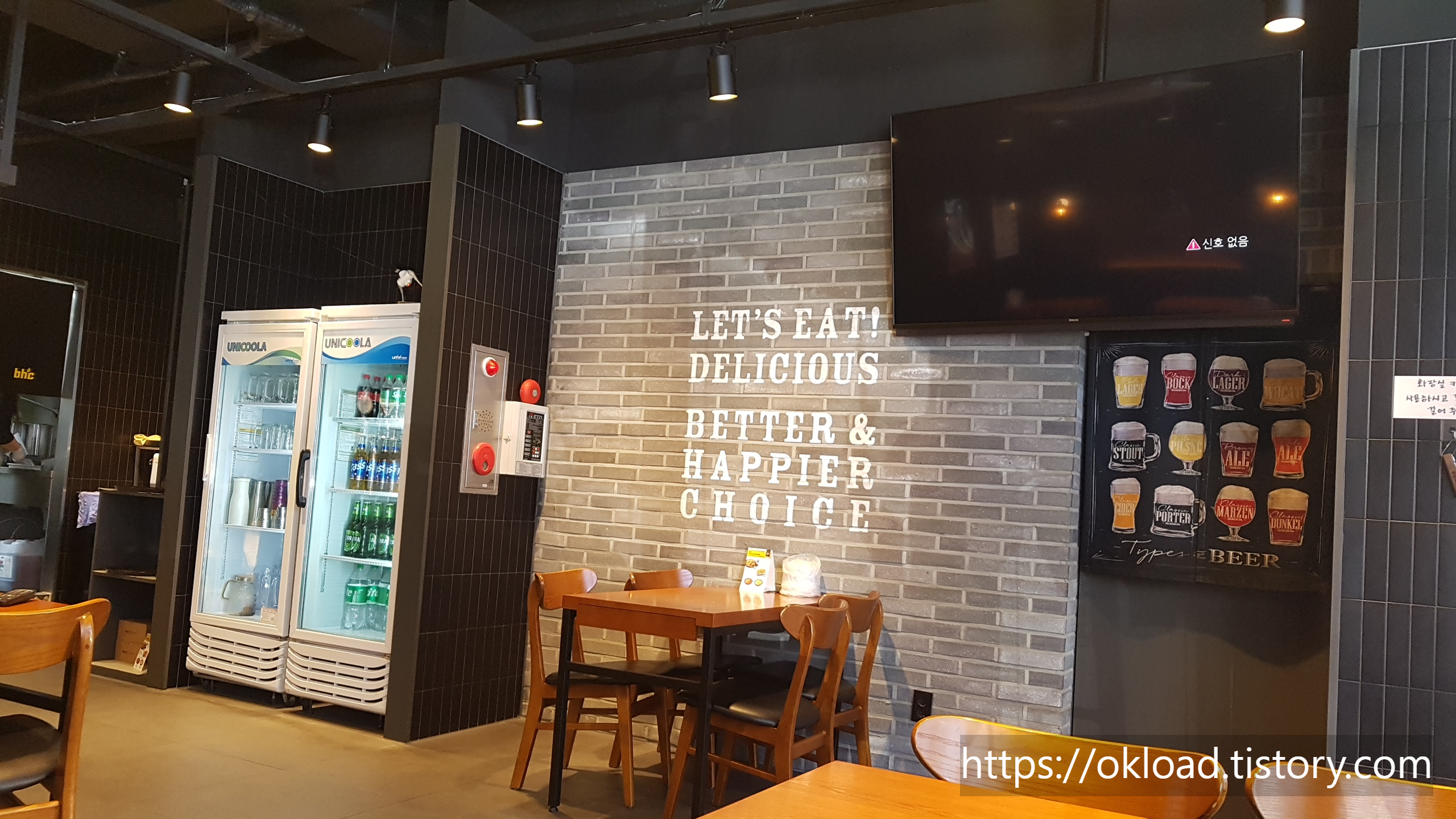 치맥을 즐기기에 부족함이 없는 실내 공간과 따뜻한 우드 질감의 테이블과 의자가 놓여있다. 대형 프랜차이즈 치킨집 답게 인테리어 수준이 우수하다. 벽에는 다소 사이즈가 아쉬운 TV가 설치되어 있는데, 스포츠를 일행들과 함께 치킨에 맥주를 마시며 관람할 수 있겠다. 특히, 곧 있으면 시작되는 카타르 월드컵 치킨집 특수를 사장님은 기대하고 있을 거다. 안면 안와골절 부상에도 불구하고 월드컵 출전을 감행한 대한민국 캡틴 손흥민이 그라운드를 누비는 모습은 벌써부터 기대된다. 손흥민을 필두로 나폴리 김민재, 슛돌이 이강인, 울버햄튼 황인찬 등 해외리그에서 활약하는 선수들 국가대표팀에서 함께 경기하는 장면은 생각만 해도 흥분된다. 가자! 대한민국! 16강! 8강! Go Go!