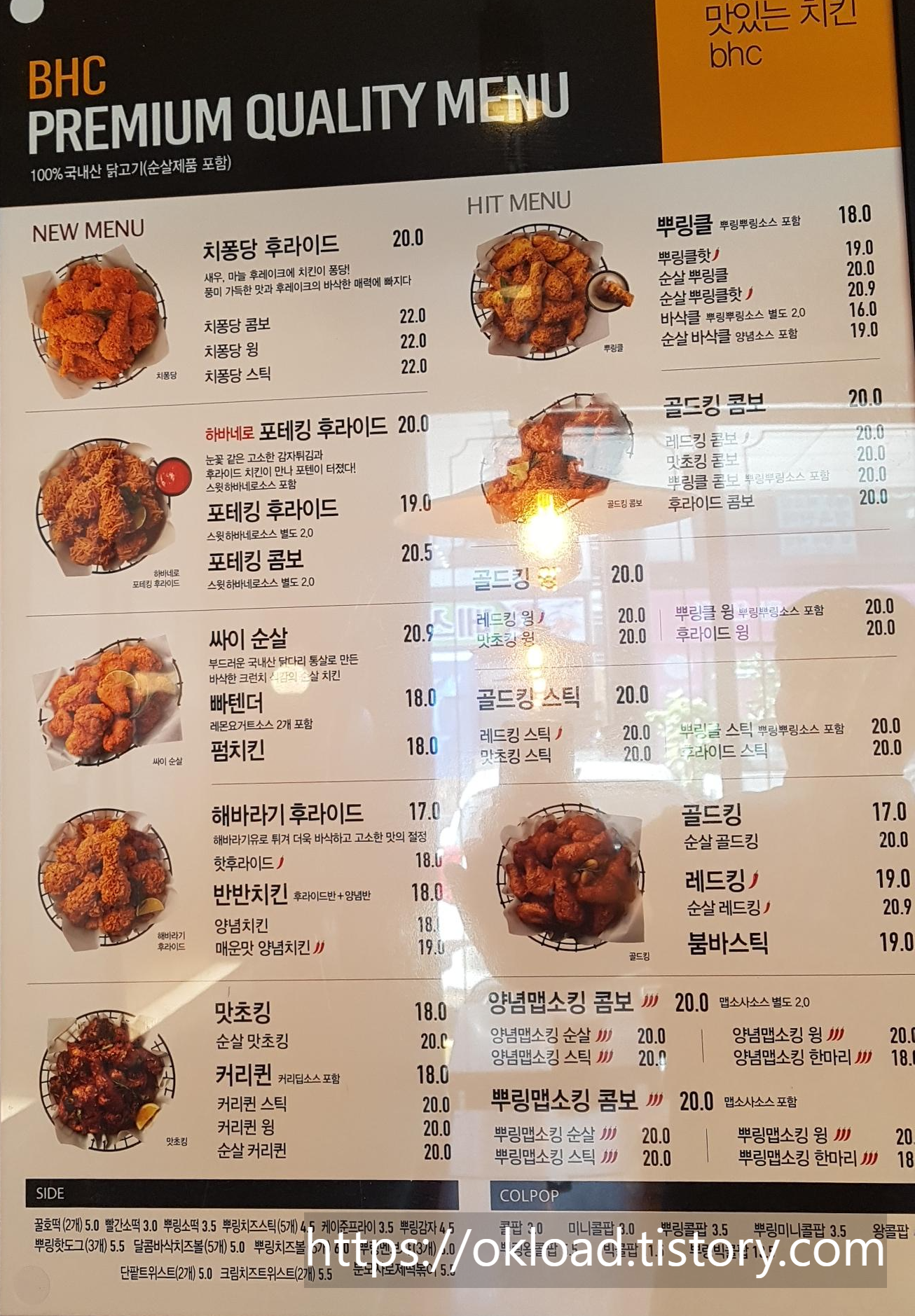 프리미엄 퀄리티 BHC 메뉴다. 자주 즐겨 찾는 BHC는 아니지만, 방문 또는 배달로 이용할 때에는 뿌링클, 반반치킨, 맛초킹 중 하나를 먹는 편이다. 새로운 메뉴를 시도하기 보다는 먹어봤던 잘 아는 매뉴를 시키는 편이다. 나에게 BHC는 뿌링클로 인식되어 있다. 그래서 내게 BHC치킨은 뿌링클이다.