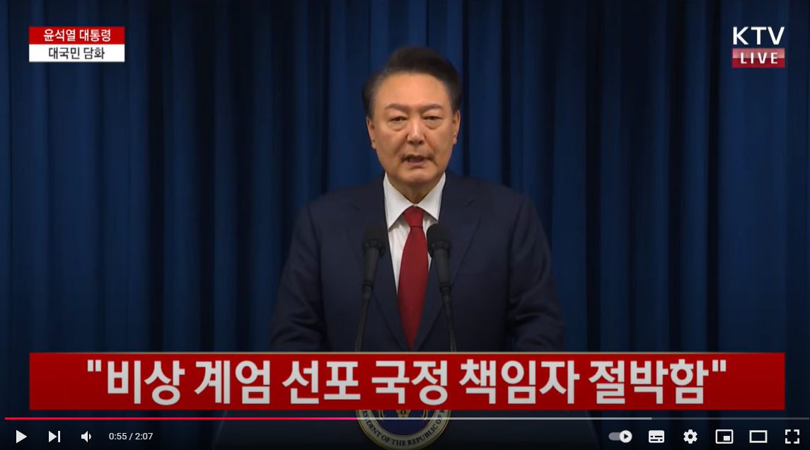 40여 년 만의 계엄령 이후 나흘 만에 윤석열 대통령이 대국민 담화를 발표하였다.