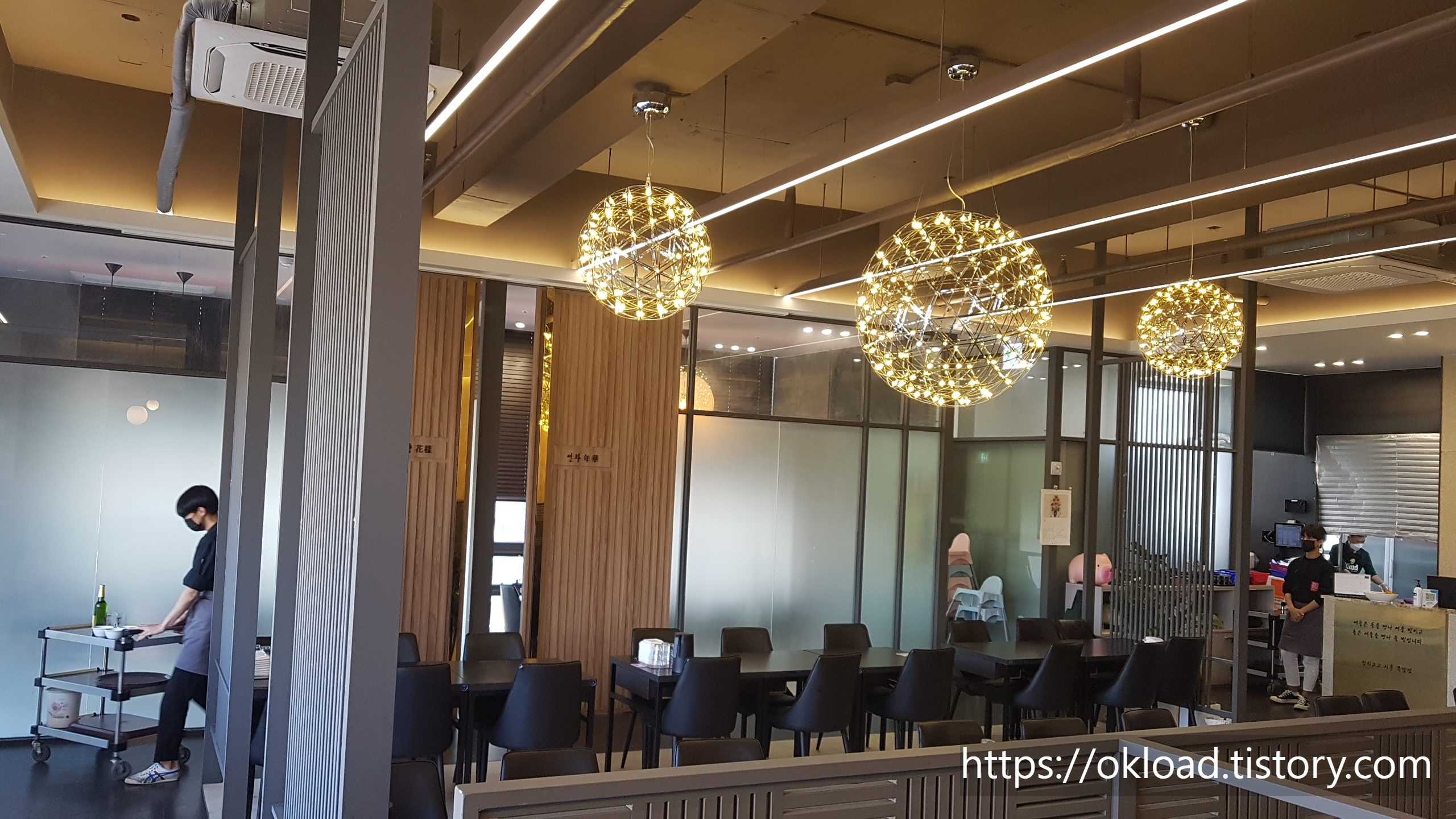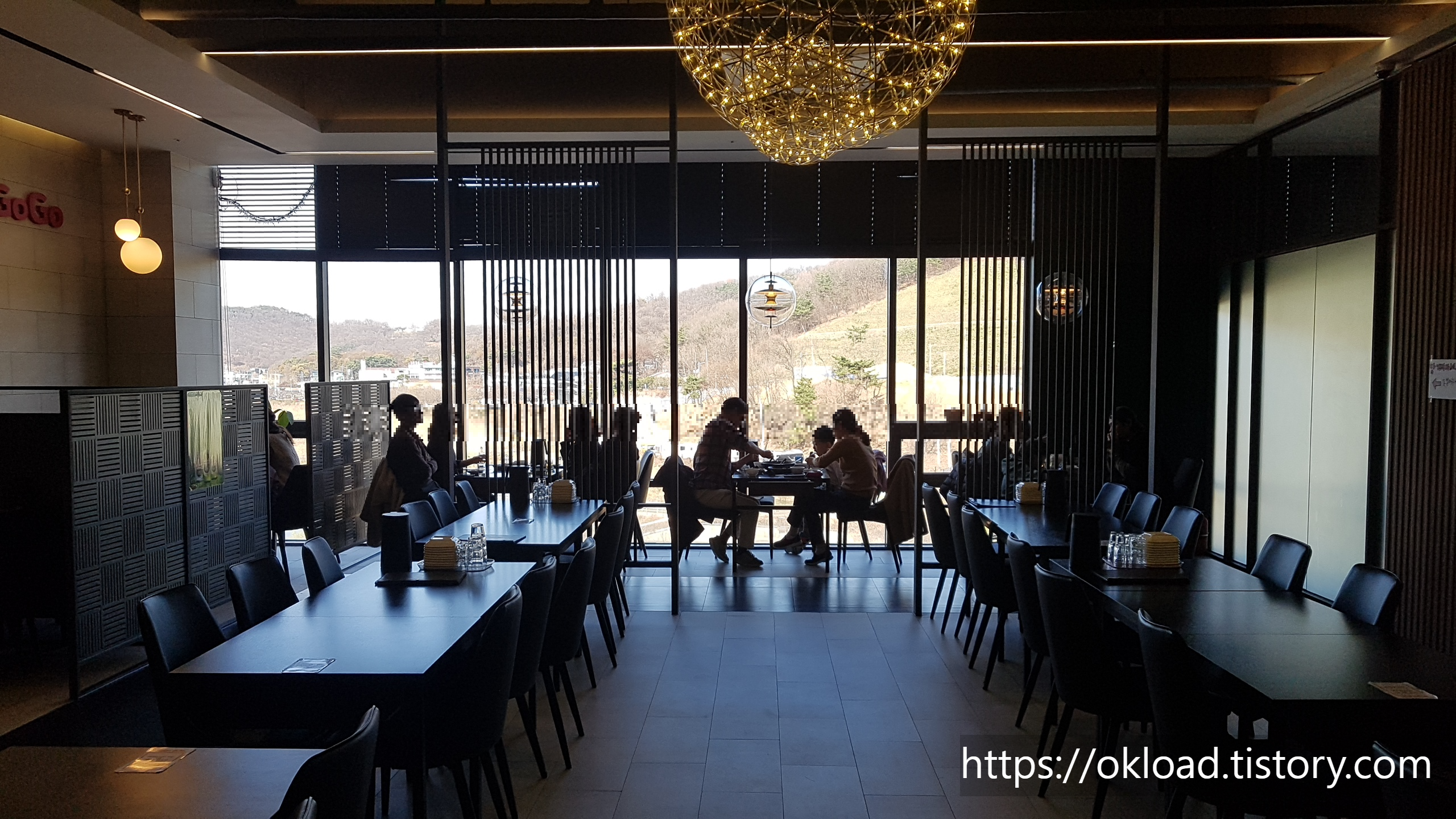 중식집 칸지고고에 들어서니 실내조명이 어둡게 느껴질 정도로 외부의 밝은 채광과 이를 잘 투과시키는 넓은 통유리 창이 눈에 들어왔다. 그리고 그 넓은 창을 통해서 보이는 창밖 풍경은 왜 이 칸지고고라는 중식당을 빛나게 하는지 알 수 있었다.
