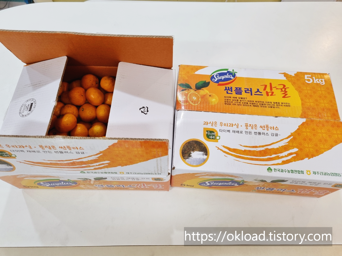 이렇게 5kg 감귤박스를 두 박스 주문하였다. 총 10kg을 4만 원에 구입하였는데, 뒤 이어서 맛을 평가하겠지만.. 제목에서처럼 올 겨울 맛보았던 귤 중에서 가장 맛있다.