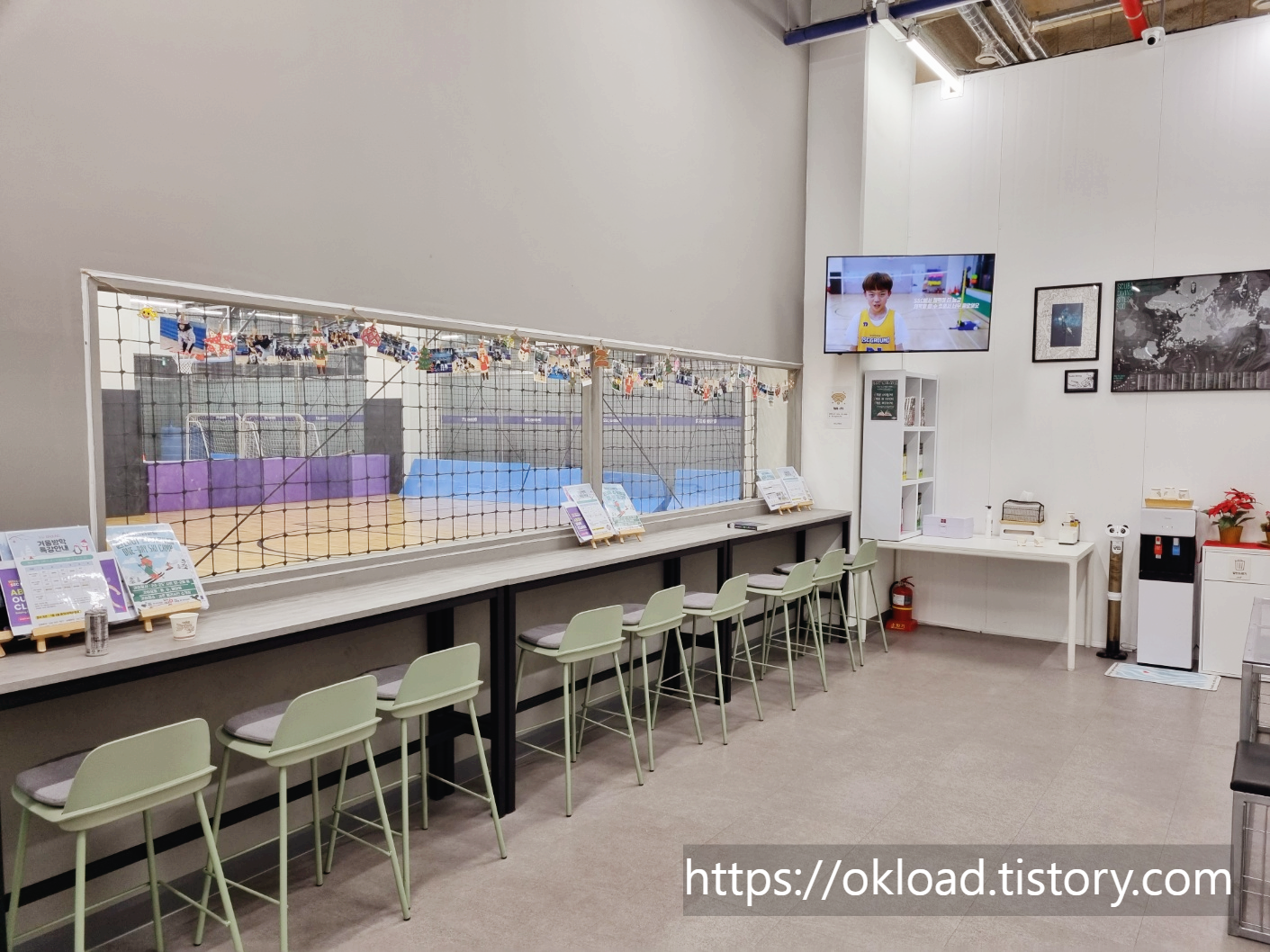 가봤던 스포츠 운동학원 중에서 대기좌석 의자 뒤편 공간이 가장 넓고 여유롭다.