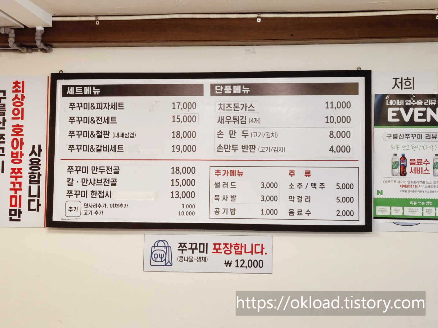구름산쭈꾸미 메뉴 가격 메뉴판