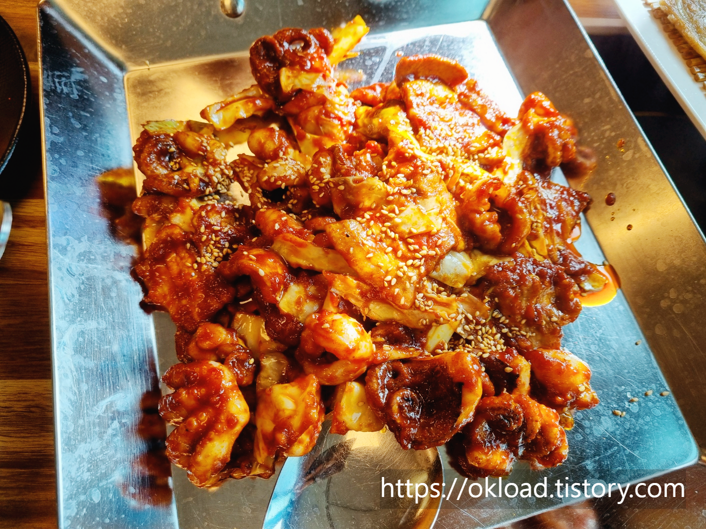 불맛이 강하지도 않으면서도 적당하게 은은하게 배어 있고, 감칠맛 나는 매콤한 양념이 굵고 신선한 주꾸미에 잘 스며들어 있다.