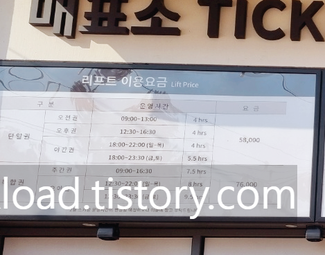 눈썰매장 이용요금은 스키장(리프트) 이용료와 별도로 결재해서 입장해야 합니다.
