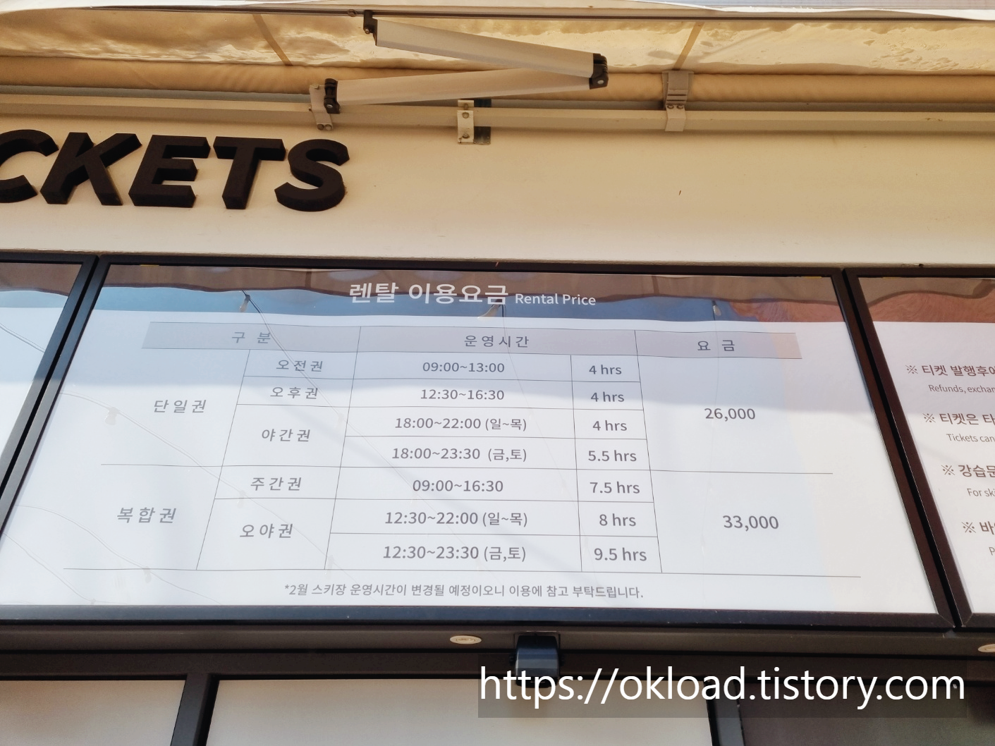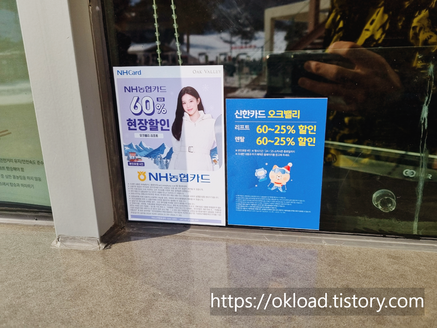 참고로 오크밸리스키장 전용 스키 보드대여는 투수객의 경우 50% 할인을 해줍니다. (단, 스키복 등 의류는 할인 안됨.)