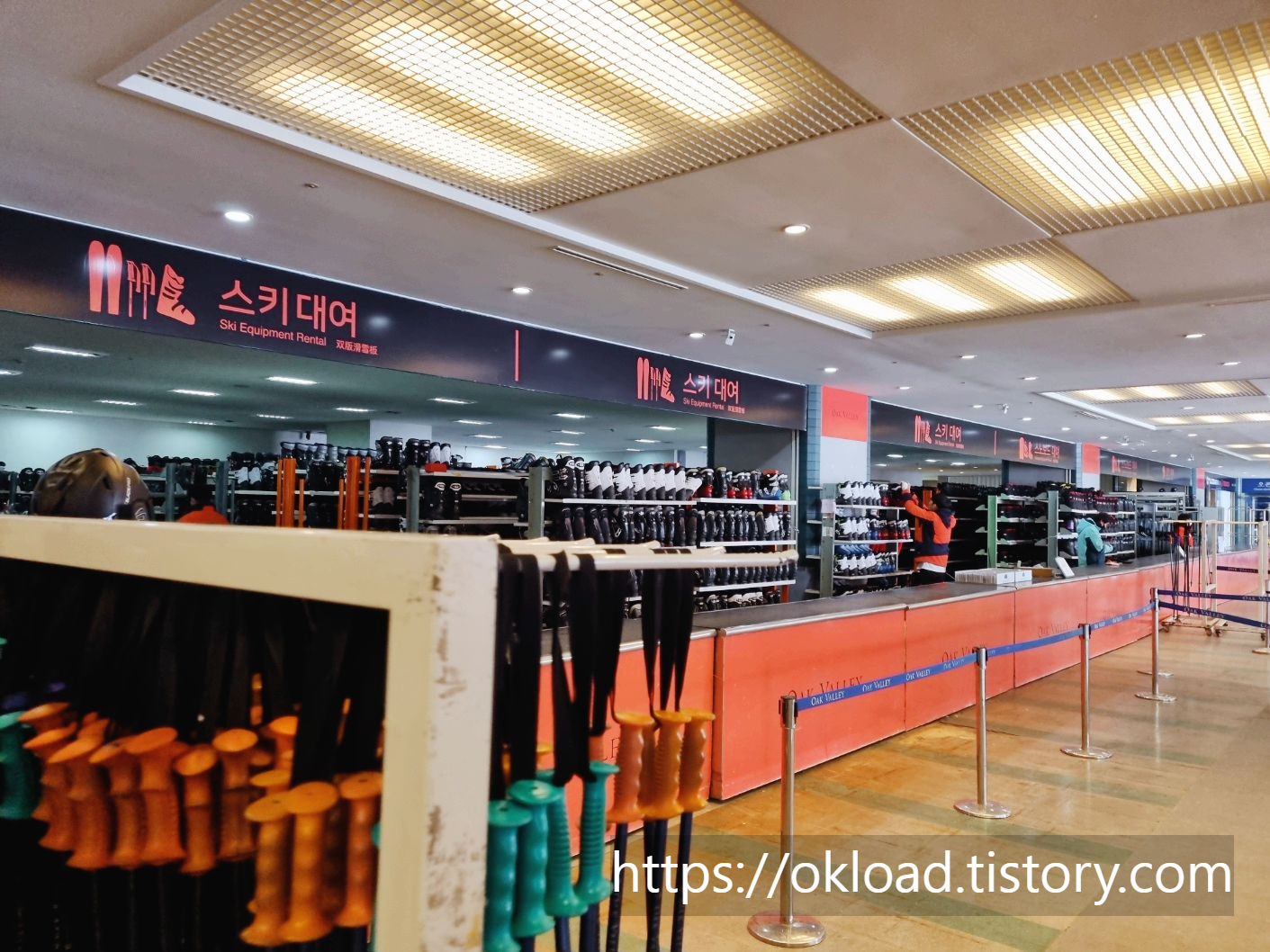 오크밸리 스키장 렌탈샵은 다른 스키장들에 비해 장비의 상태가 비교적 좋은 편입니다. 아마도 근래에 새 제품으로 입고한 것으로 보입니다.