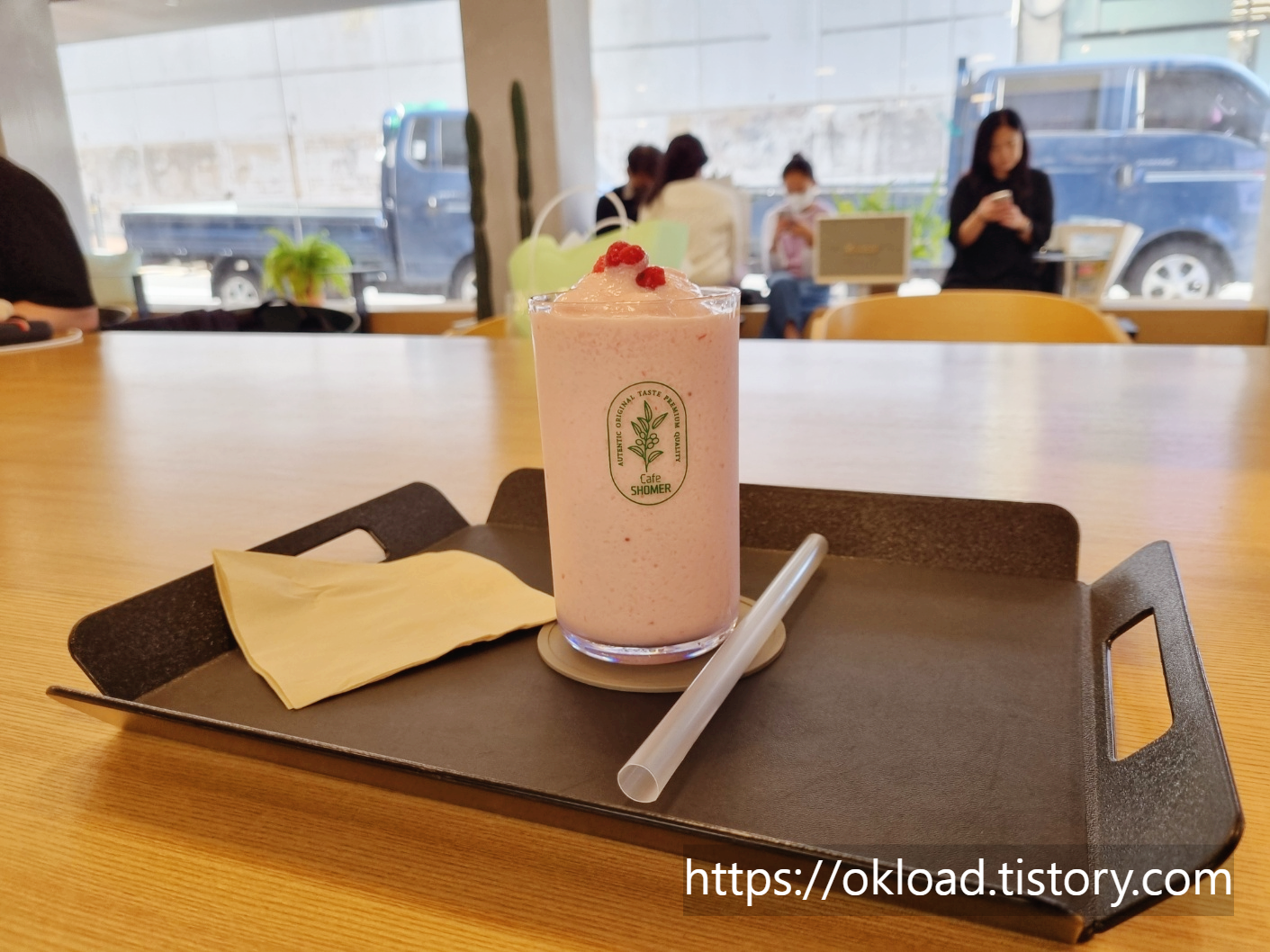소메르 카페 최애 메뉴 딸쉐(딸기쉐이크)입니다.
