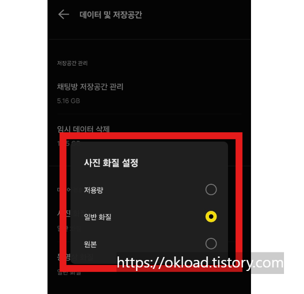 카카오톡 채팅방 고화질 사진 화질 변경 방법