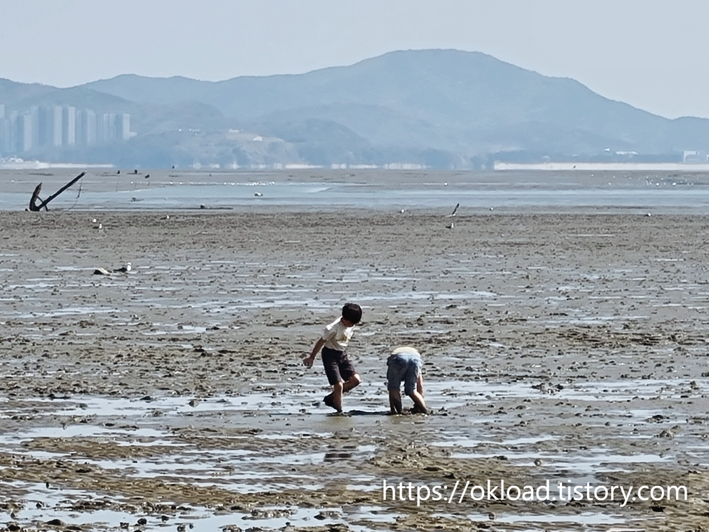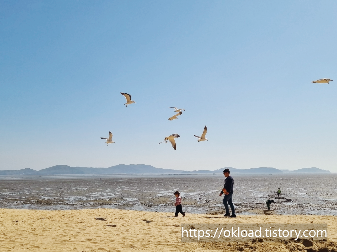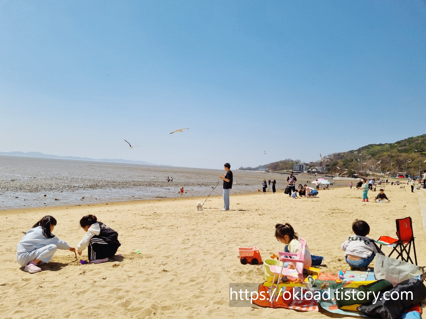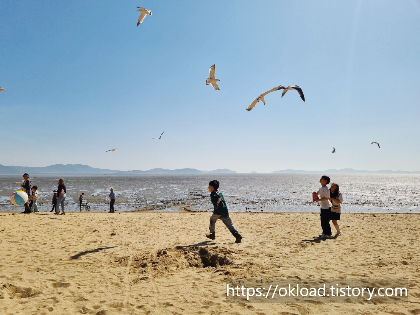 우리 가족이 동막해변을 찾는 이유는 갈매기 먹이주기 체험도 있지만, 무료로 갯벌을 체험하고, 백사장에서 모래놀이도 즐길 수 있어서입니다.