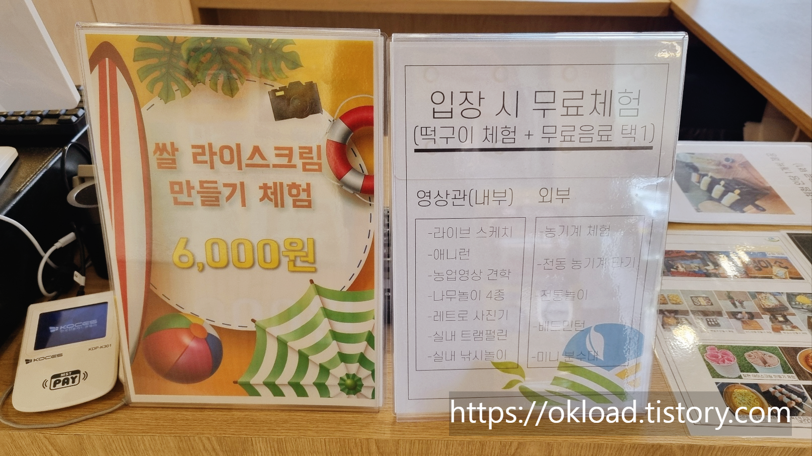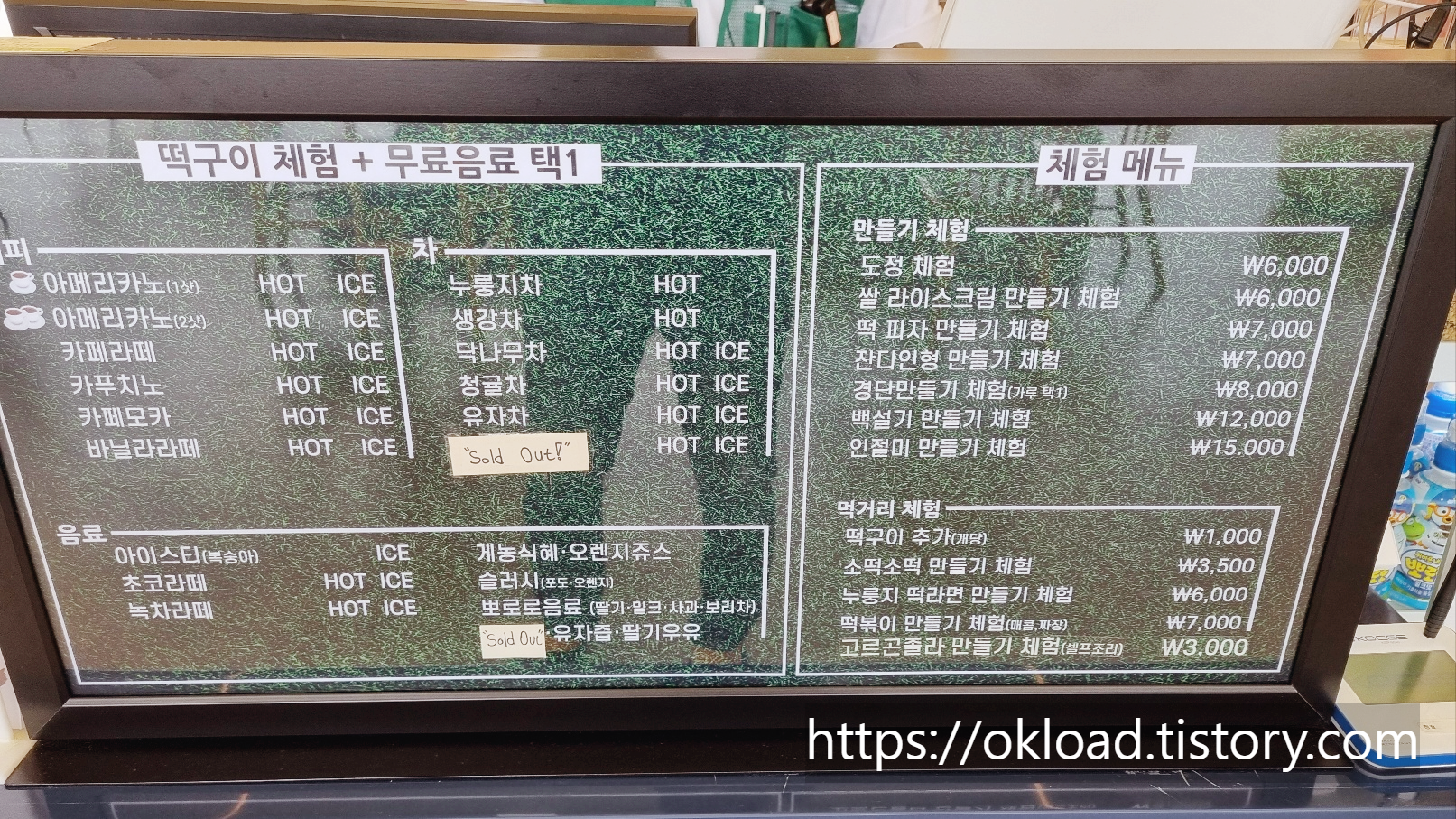 한마디로 입장료에 떡구이체험 + 무료음료 1잔 사용권이 포함된 가격인 것이다.