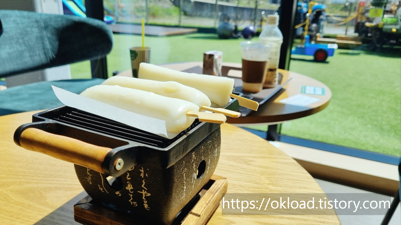 게다가! 기본적으로 무료로 꽤 퀄리티 높은 음료(커피 포함)를 인당 1잔씩 전체 메뉴판에서 선택할 수 있고, 추가로 떡구이체험까지 포함된 가격이다!