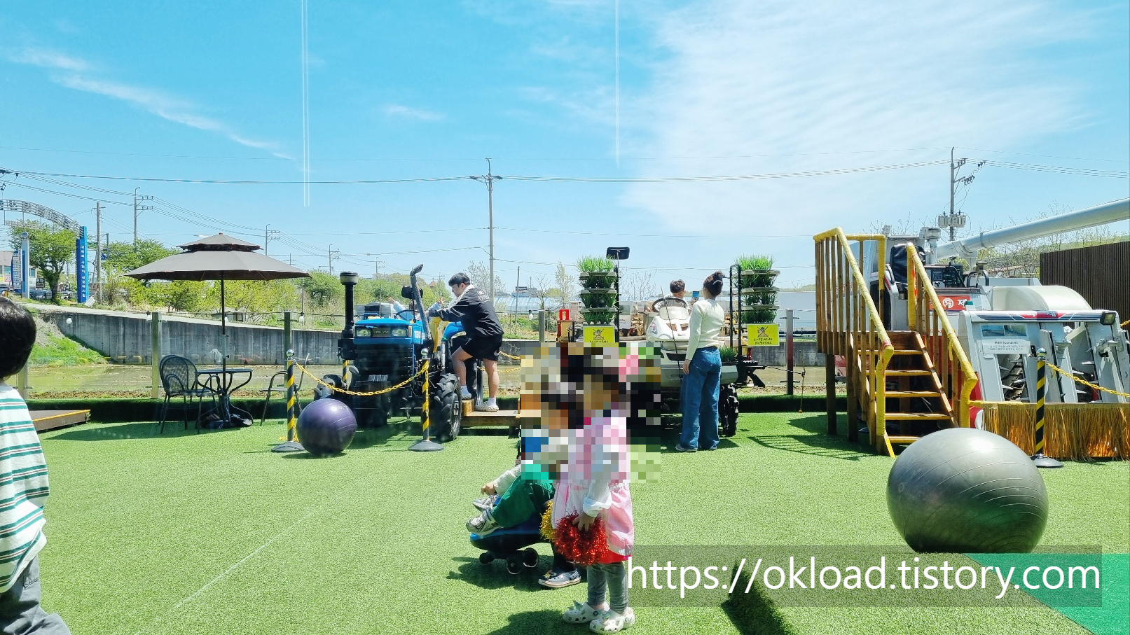 이곳에서 농촌에서나 볼 수 있는 콤바인, 트랙터 등 실제 농기구를 보고 앉아볼 수 있다. (운행은 불가)