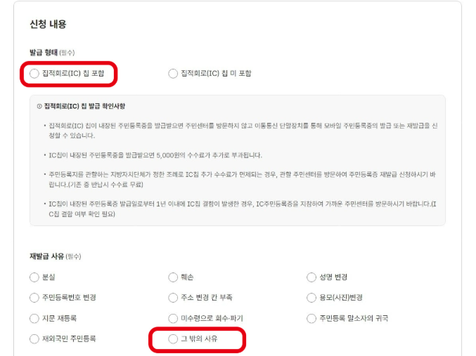 여기서 주의할 점은, 주민등록증을 최초 처음 발급받는 분은 '신규 신청'이고, 그 밖의 분들은 '재발급'을 누르세요!