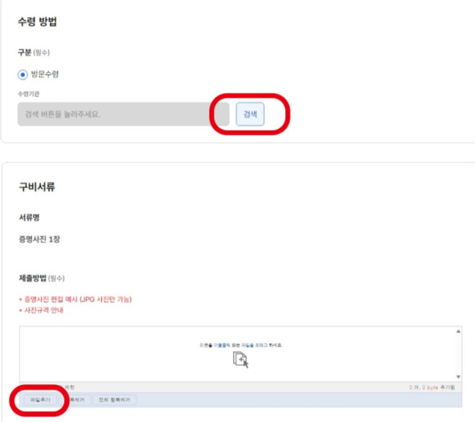 IC칩 포함해서 수령기관 선택, 사진파일을 첨부 업로드 후 신청합니다!
