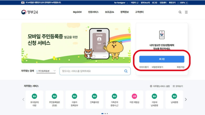 가장 먼저 정부24(민원24) 사이트 홈페이지에 들어가서 로그인 합니다.