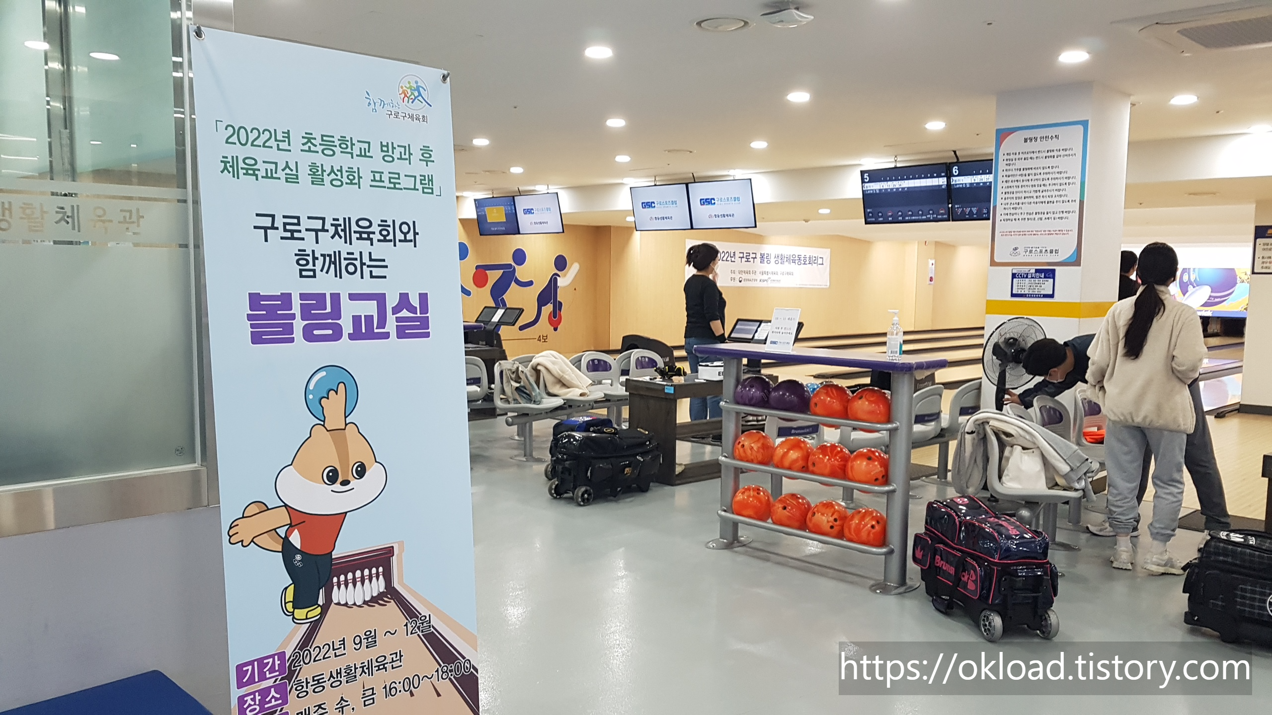 볼링 동호회인지 이미 개인 볼링장비를 갖추고 볼링을 하고 있는 볼러들이 여럿 보였다. 그 옆으로는 구로구체육회와 함께하는 볼링교실 홍보 배너가 눈에 들어왔다.