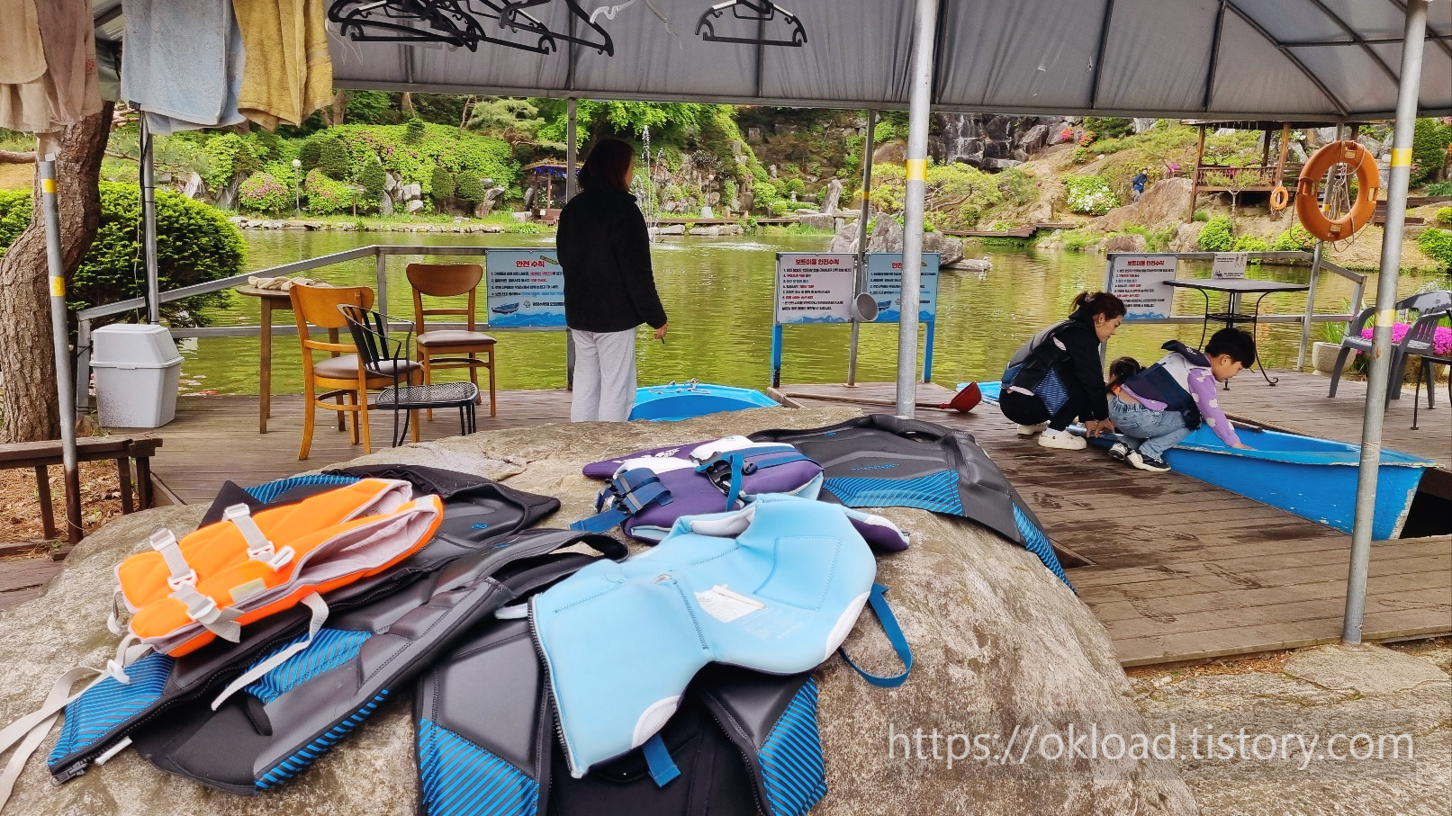 안전조끼(구명조끼) 착용 대여료 역시 무료!! 배타기 일괄 이용료가 전혀 들어가지 않는 양평수목원캠핑장이다.