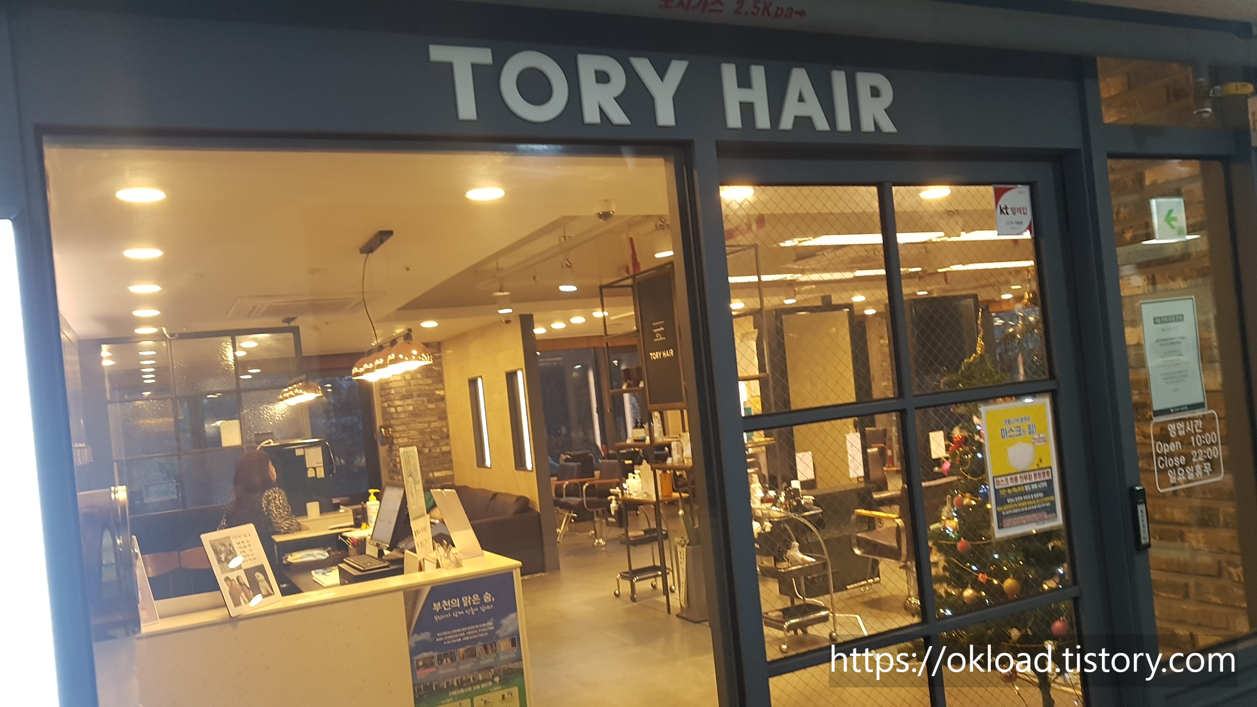 옥길동 토리헤어(모즈토리)는 옥길지구 중심상권 퀸즈파크 구역에 위치하며, 단골로 이용하는 SKY스카이스크린골프장 건물에서도 가깝다.