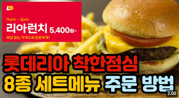 맛있는 시간 롯데리아 런치세트 리아런치는 오전 11시부터 오후 2시까지 할인된 저렴한 가격에 세트메뉴를 먹을 수 있다.