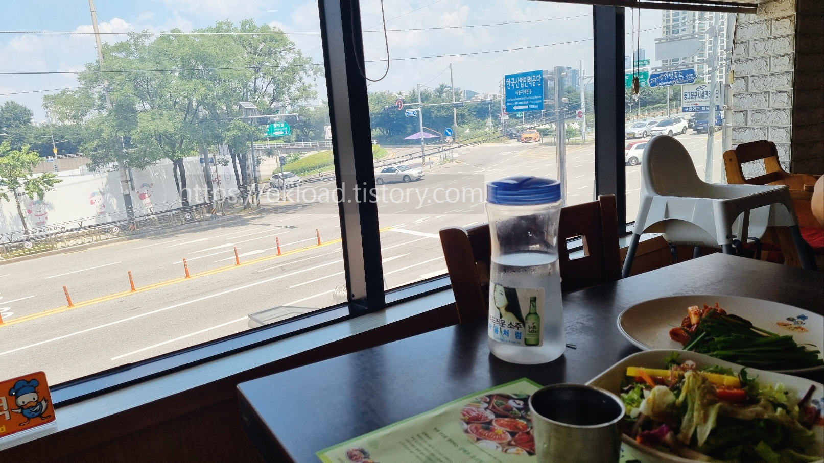 창밖으로는 동부간선도로와 중랑천이 일부 보이는데, 동대문구 장안동 식당 중에서는 뷰가 괜찮은 편에 속하는 오리정식 맛집입니다.