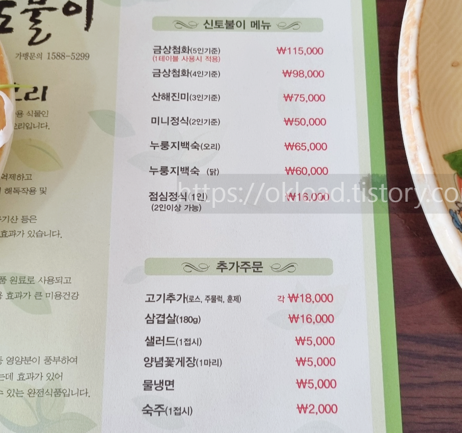 신토불이에서 이번에 주문한 메뉴는 정심정식입니다.