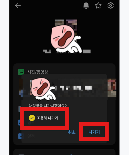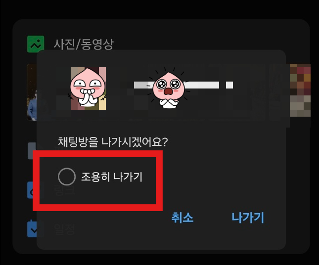 카톡 단체대화방 단톡방 조용히나가는 방법