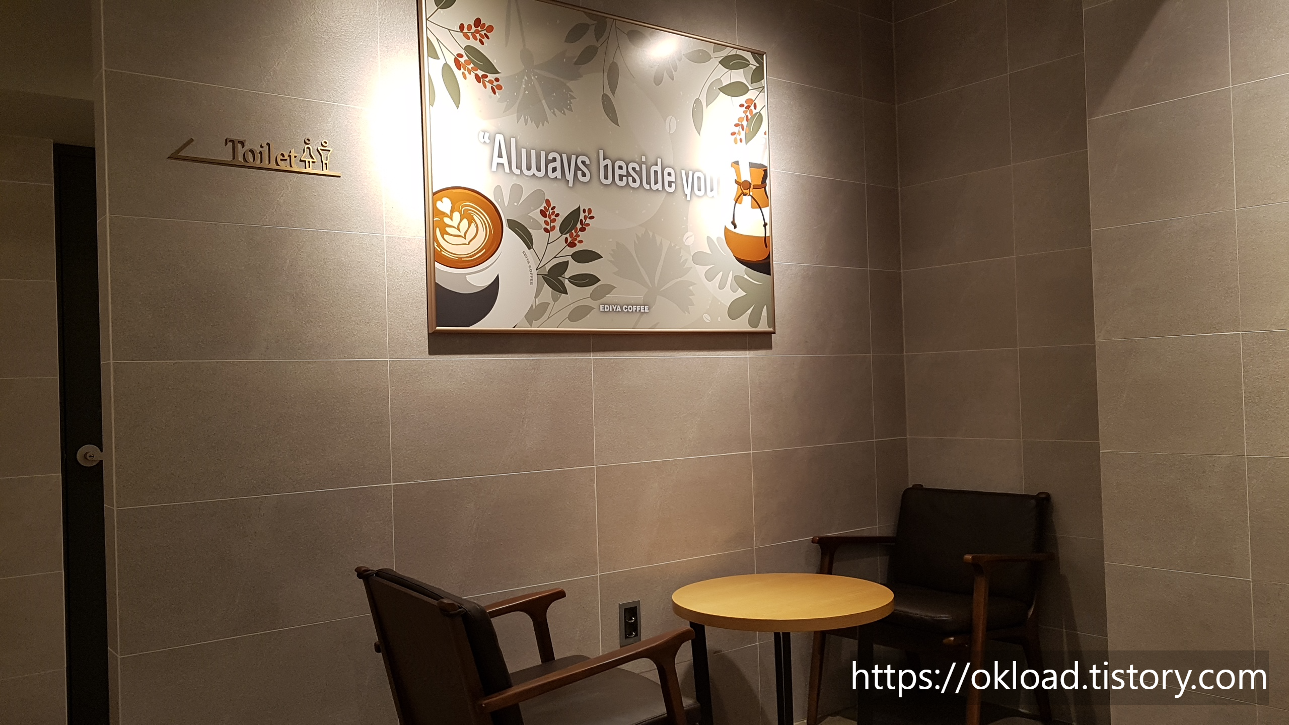 좁은 도로를 인접한 골목상권 카페임을 감안했을 때 비교적 매장의 면적이 넓다. 그리고, 최근에 지어진 이디야 카페라서 트랜드에 맞춰서 대중적인 이디야 이미지에 고급스러움이 더해진 인테리어다. 획일적이지 않은 다양한 종류의 테이블과 의자가 마련되어 있다. 그리고, 테이블 간 간격도 넓은 편이라서 쾌적함이 느껴지는 장안동 장안중량점 이디야커피다.