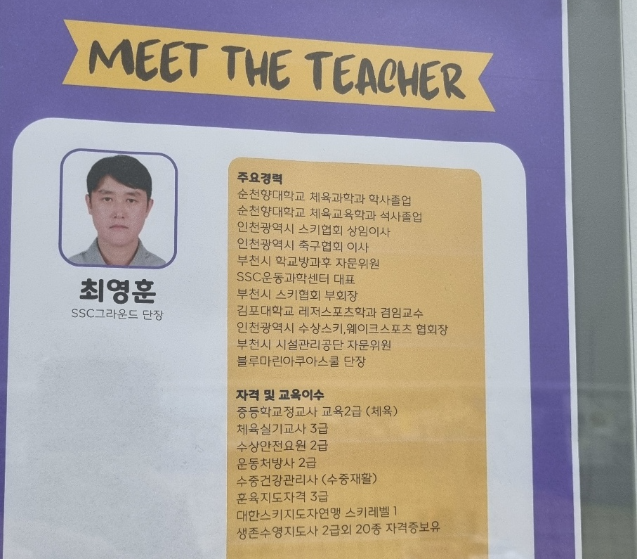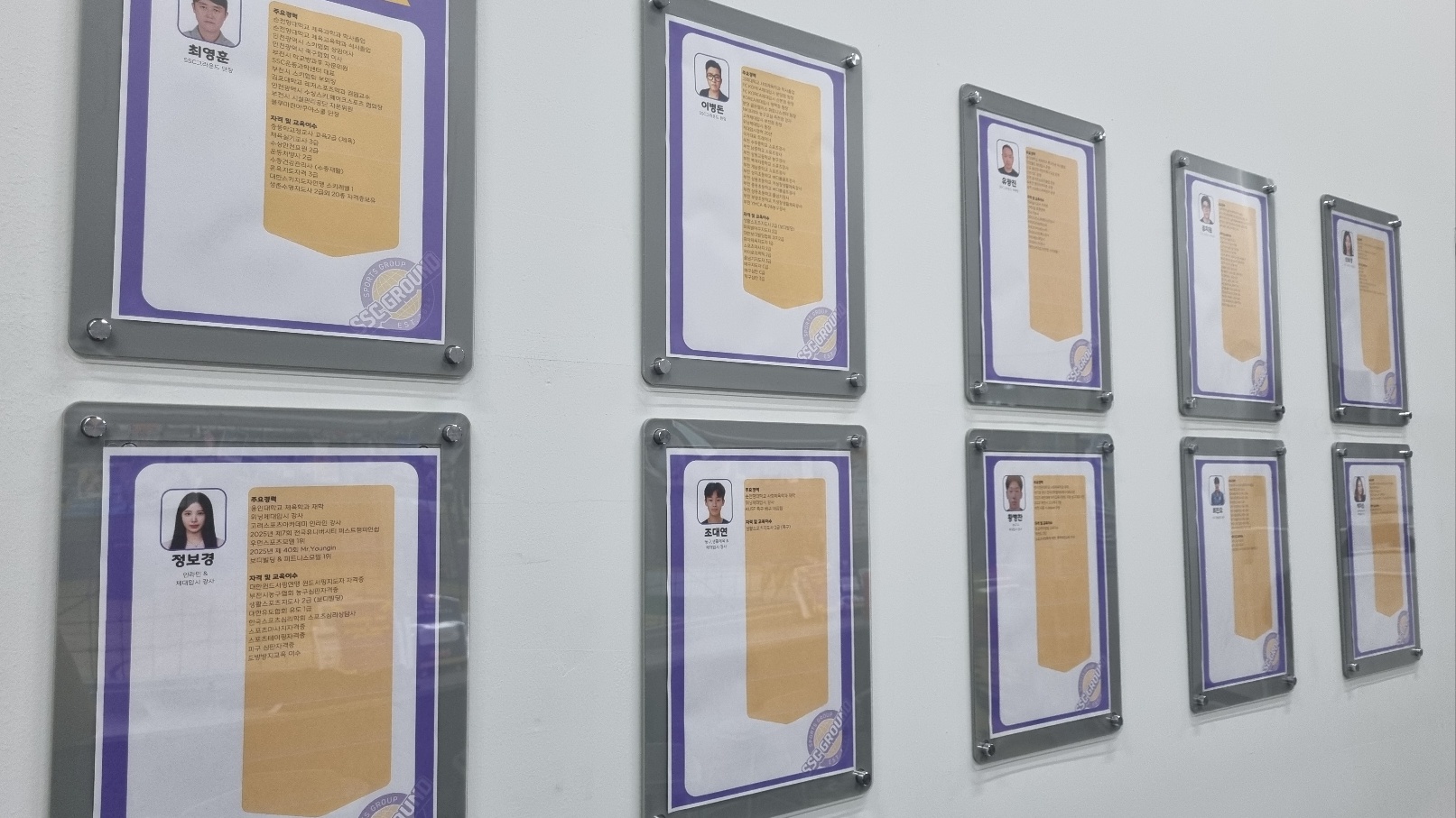 이렇게 SSC체대입시학원은 강사님 별로 주요 경력과 프로필이 벽면에 게시되어 있습니다.
