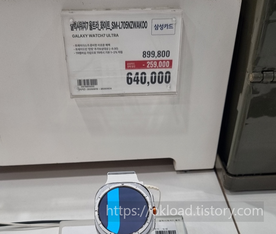 정가 90만 원에 달하는 갤럭시워치울트라7은 카드할인이나 포인트할인 등 이벤트 프로모션을 통해서 64만 원 정도에 구입 가능하다.