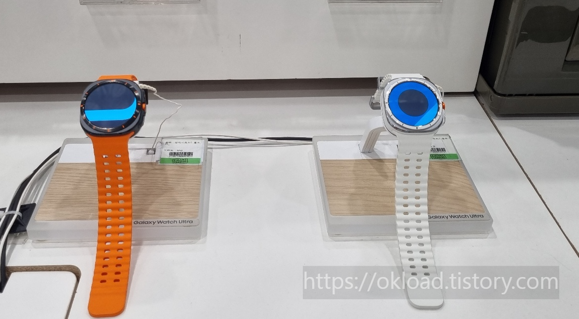 매장에서 본 갤럭시워치 울트라7은 오렌지와 화이트 두 가지 색상의 스트랩 제품이었다.