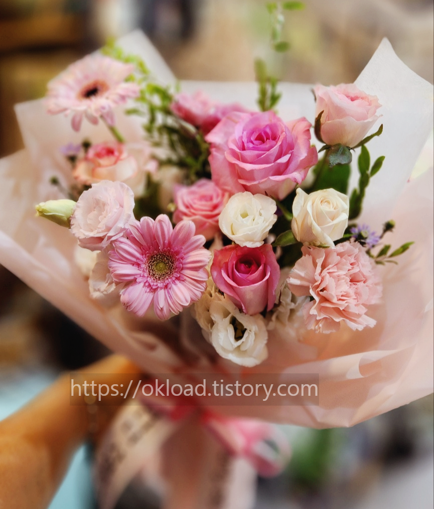 그렇게 소형 꽃다발을 배송비 포함해서 3만 원에 구입할 수 있었고, 사장님은 10시에 출근하자마자 꽃다발을 예쁘게 만들어서 직접 배달까지 해주셨다.