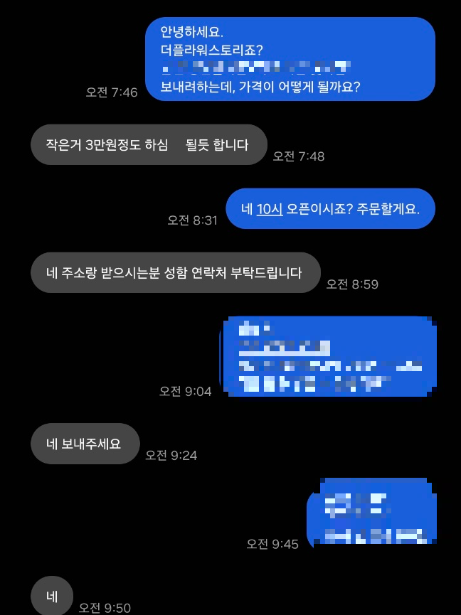그렇게 5번째, 6번째 꽃가게에 연락을 하던 중 반갑게도 문자로 답장을 받아준 장안동 꽃집이 있었으니 '더플라워스토리'였다.