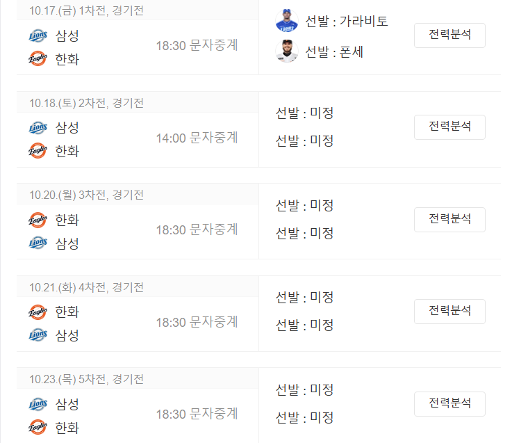 삼성과 한화 모두 한국시리즈(코리아시리즈)를 대비하기 위해서 5차전까지 가고 싶지 않을 것이다. 하루라도 더 휴식 기간을 가지기 위해서는 3~4차전 내로 승부를 결정짓는 게 좋다.