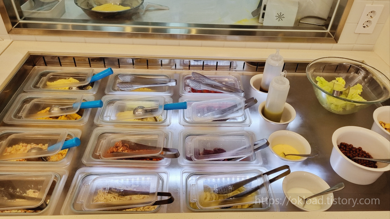 푸짐하고 다양하다고는 볼 수 없지만, 적당한 종류의 샐러드들이 싱싱하게 잘 보존 관리되고 있다.