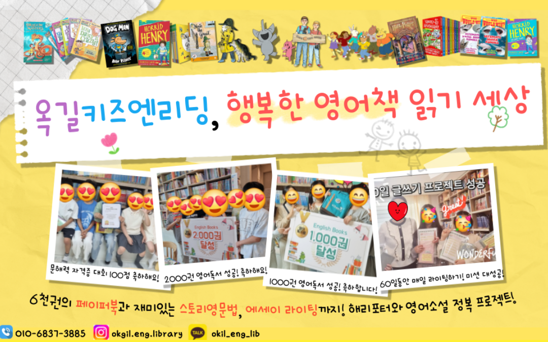 독서의 즐거움을 알아가며, 영어원서에 몰입할 수 있도록 이끌어주는 옥길 키즈엔리딩입니다. ♥ 국제어린이영어교사(SM-TESOL)♥연세대영어독서전문인1급♥(제4544호)
