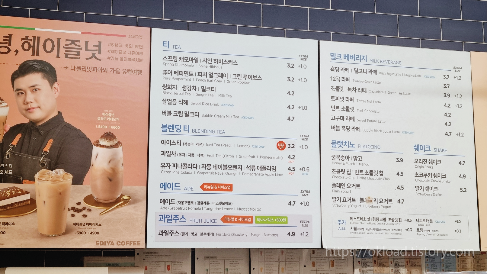 이디야커피 카페 메뉴 가격을 공유합니다. 오랜만에 가본 이디야는 그대로였지만, 왠지 정겨운 마음과 동시에 측은한 마음마저 들었다.