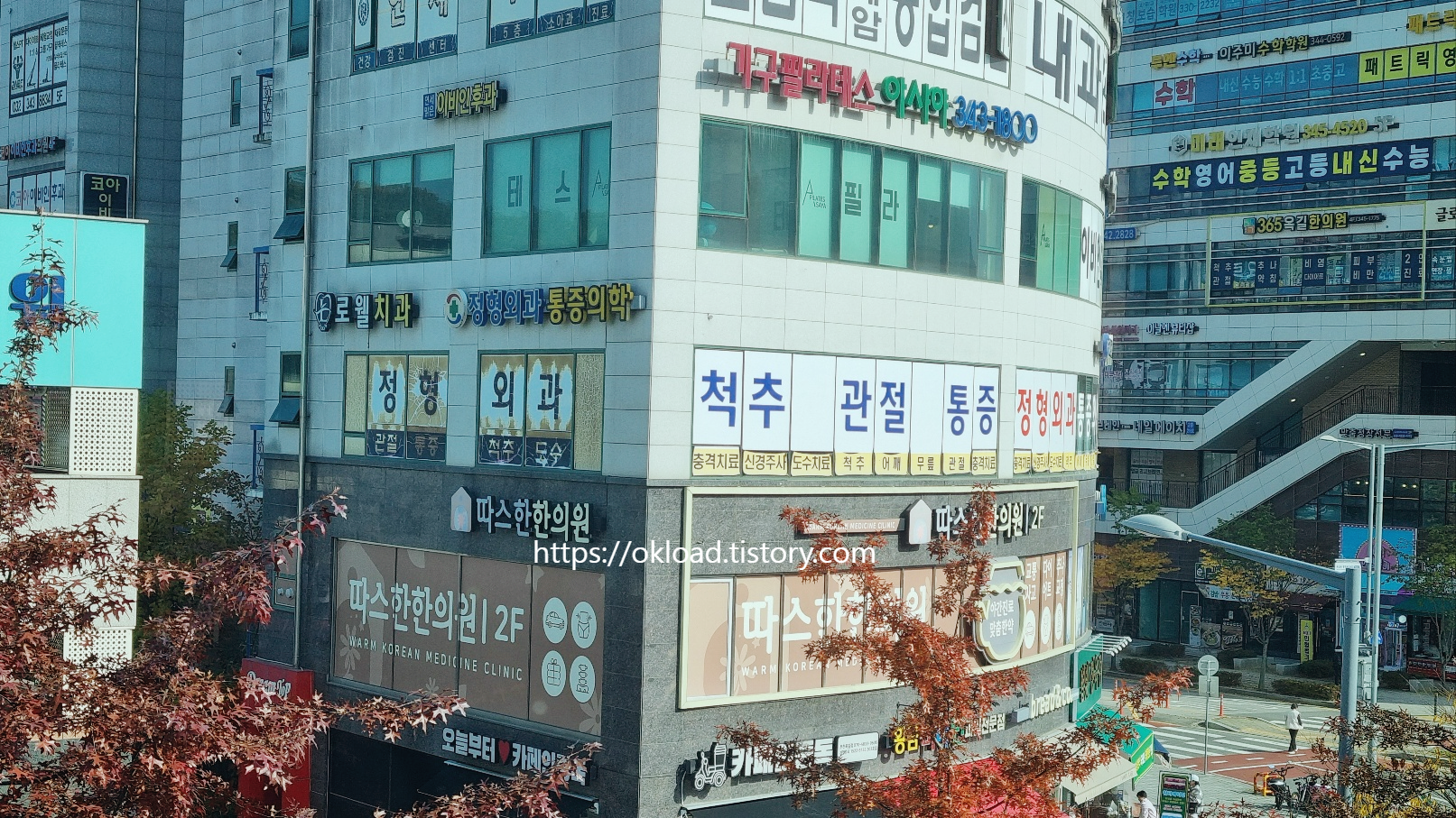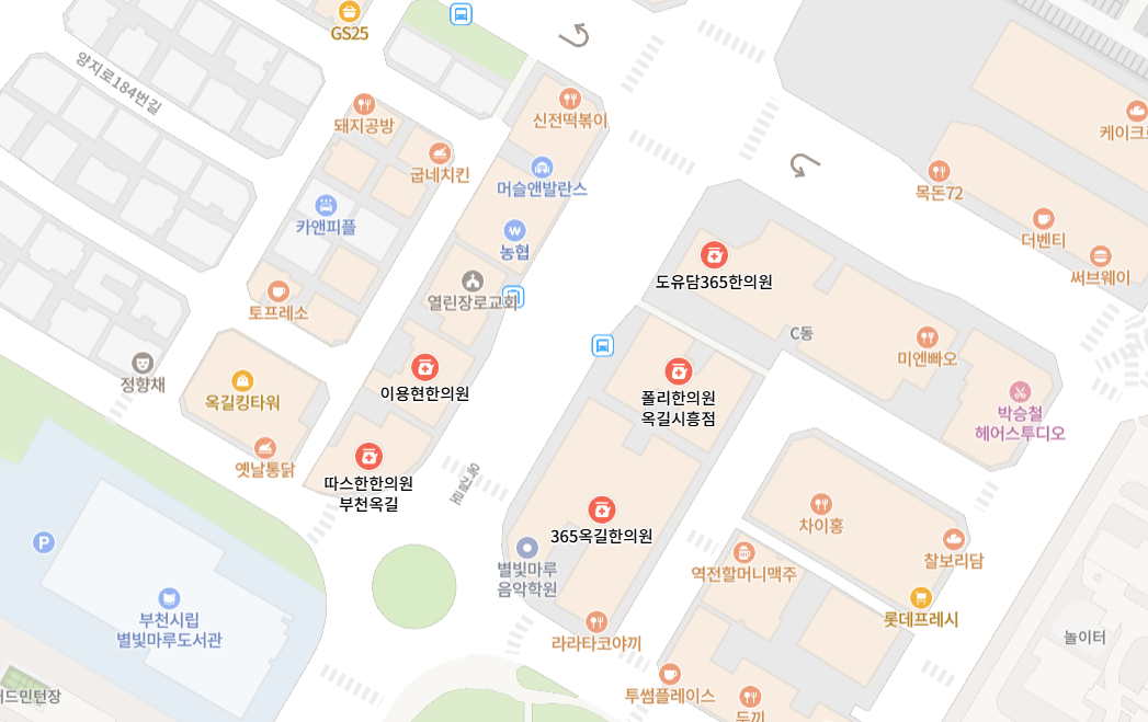 부천시립 별빛마루도서관 바로 앞 상가건물에 입점해 있는 따스한한의원이다.