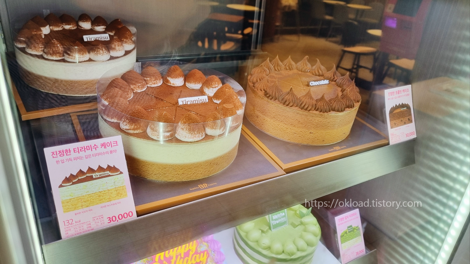 베스킨라빈스 티라미스케익이다. 가격 30,000원 / 칼로리 132kal이다.