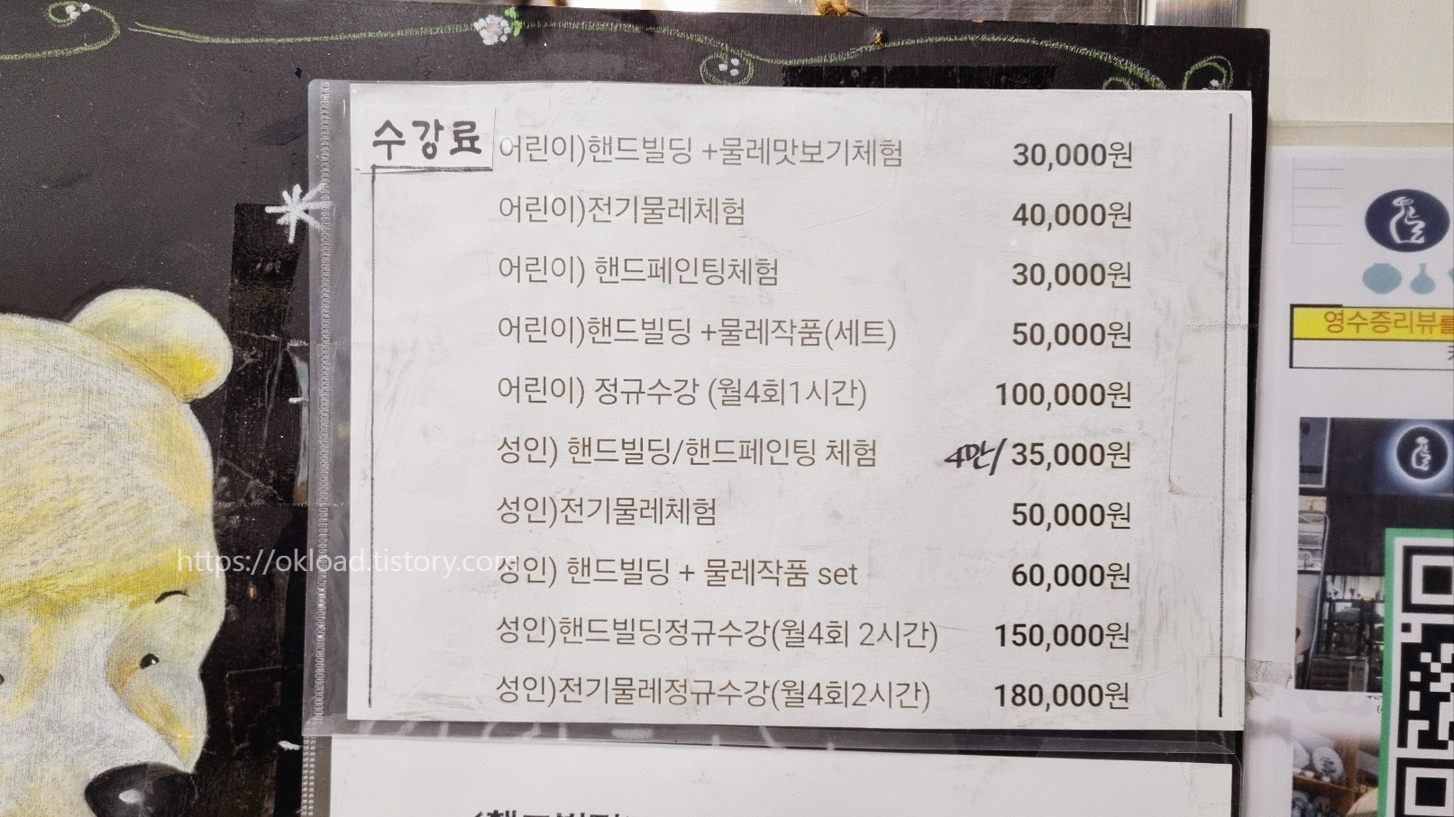 이번에 아이가 참여한 프로그램은 '어린이 전기물레체험'이다. 2시간 내내 실컷 물레를 돌리며 도자기를 만들었음에도 4만원밖에 안된다.