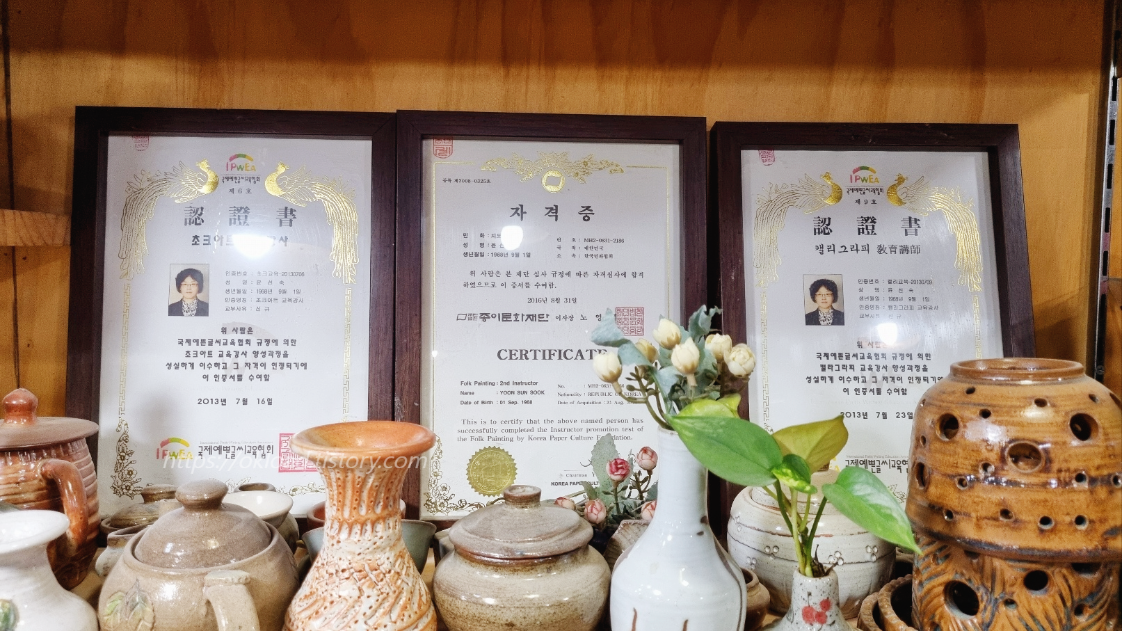 팔방미인 예술인 원장님이시네요. 켈리그라피부터 도자기, 민화 그림까지 다채로운 예술 미술 분야로 뻗어나갈 수 있는 교육자이십니다.