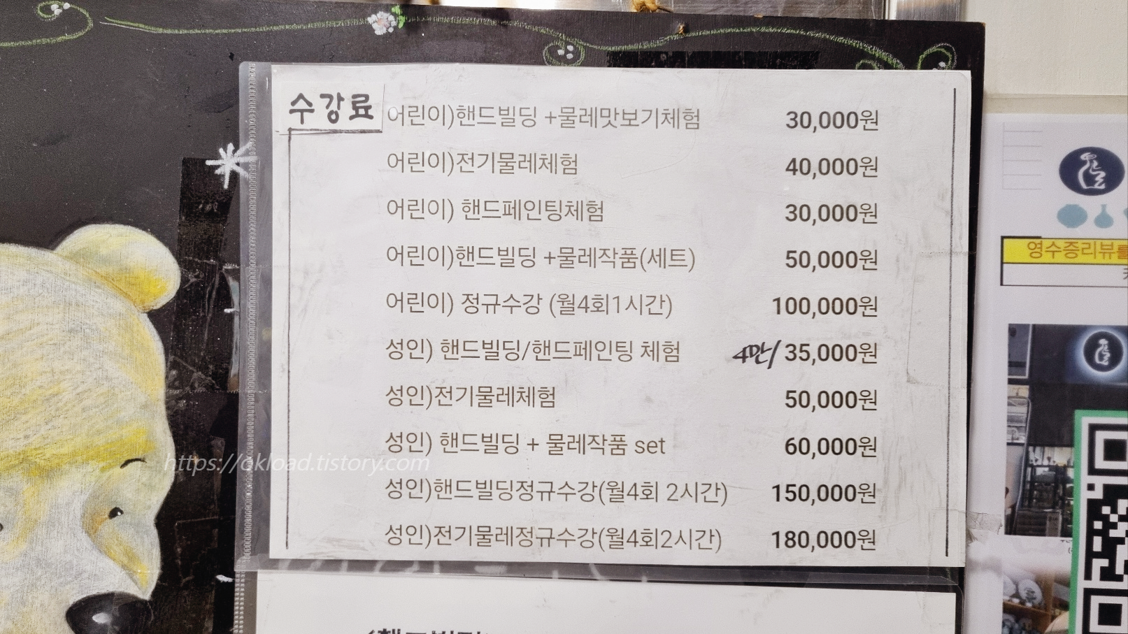 그래서 주 1회 (월4회) 정규반 수업에 관심을 갖게 되었는데, 1개월 학원비가 10만원입니다.